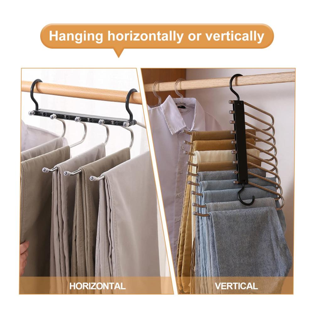 Platz sparenJeder platzsparender hosenbügel kann bis zu 9 Hosen oder Jeans gleichzeitig aufnehmen. | Zwei VerwendungsmöglichkeitenEs kann horizontal oder vertikal verwendet werden. Sie können wählen, wie Sie es nach Ihren Bedürfnissen aufhängen möchten. | Rutschfeste StangeAn jeder Stange befinden sich ABS-Kunststoffeinlagen zum Aufhängen und Kappen am Ende der Stangen, die das Abrutschen der Hose effektiv verhindern können. |