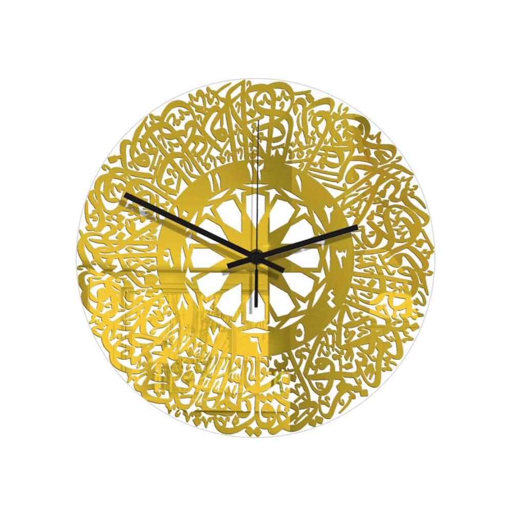 JAWSEU islamische Kalligraphie Wanduhr, Muslim Wanduhr Islamische 3D Acryl Wanduhr Ohne TickgeräUsche Lautlos DIY Wanduhr Wand Deko Uhren Eid Ramadan Stille runde Spiegel Wanduhr Uhren für Wohnzimmer