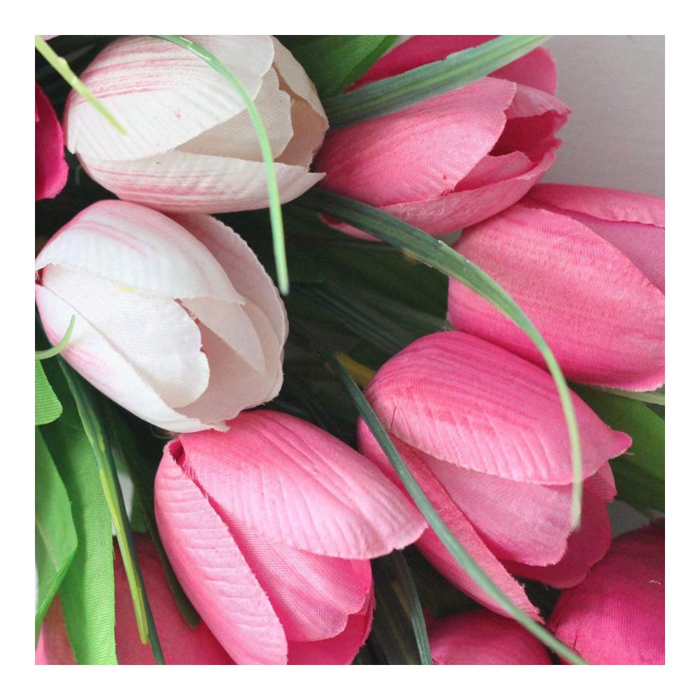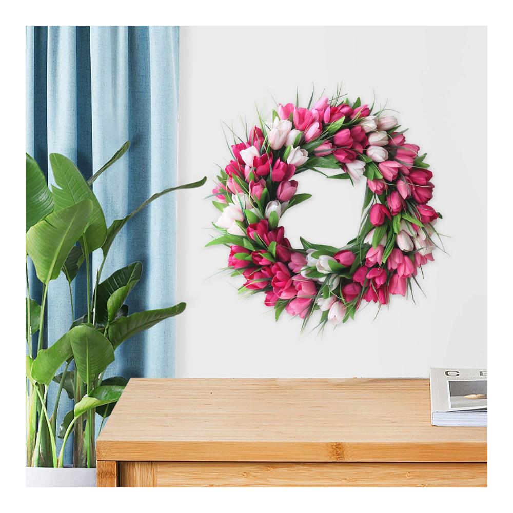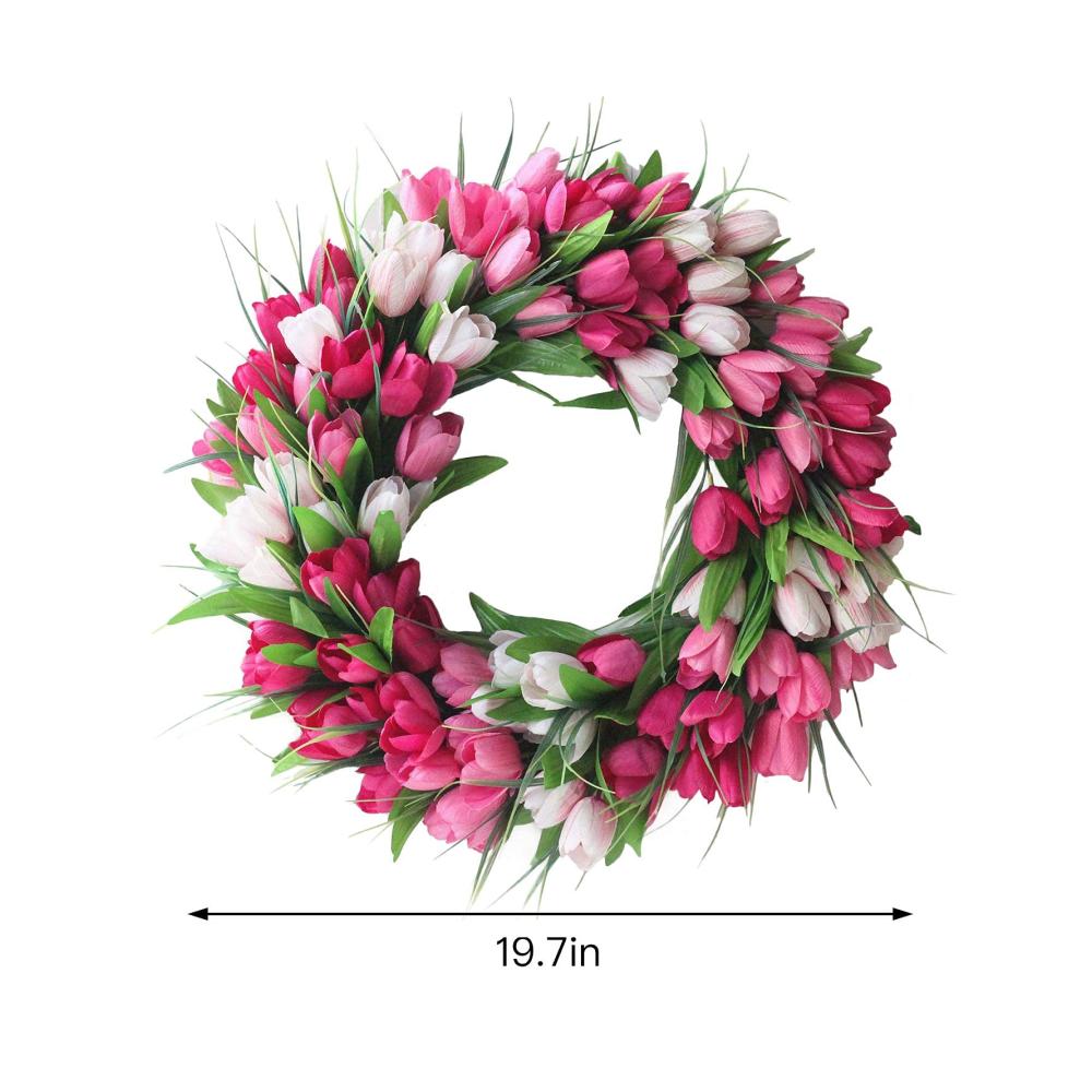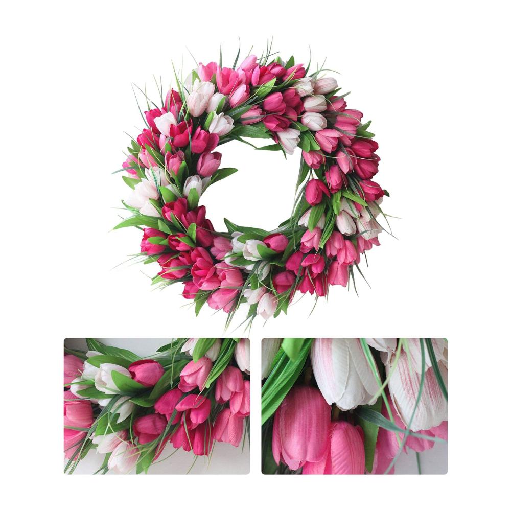 Geeignete Größe: Der Tulpen-Kranz hat einen Gesamtdurchmesser von 50 cm. Schöner Frühlings- und Sommerkranz bietet ein realistisches Aussehen, gefüllt mit schönen und üppigen Blumen; das elegante Aussehen dieses Blumenkranzes hilft, Ihrem Zuhause einen Hauch von Farbe und das Gefühl der Natur zu verleihen.