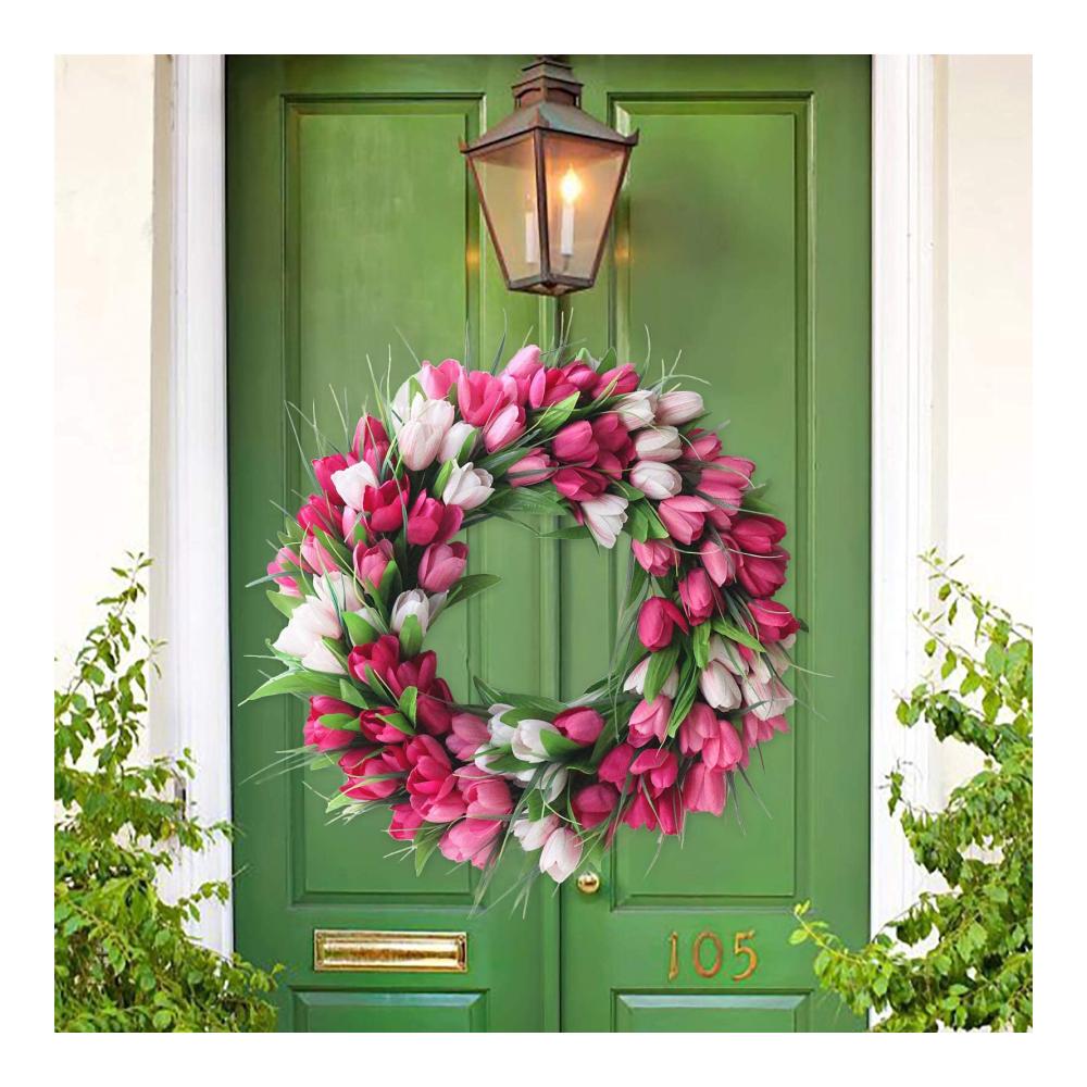 Tulpen-Türkranz: geeignet für alle Arten von Anlässen als Dekoration, Türwanddekoration, Wohnzimmer-Esszimmer-Blumendekoration, Weihnachtstag, Thanksgiving, Hochzeitskranz, kann auch als Geschenk verwendet werden.