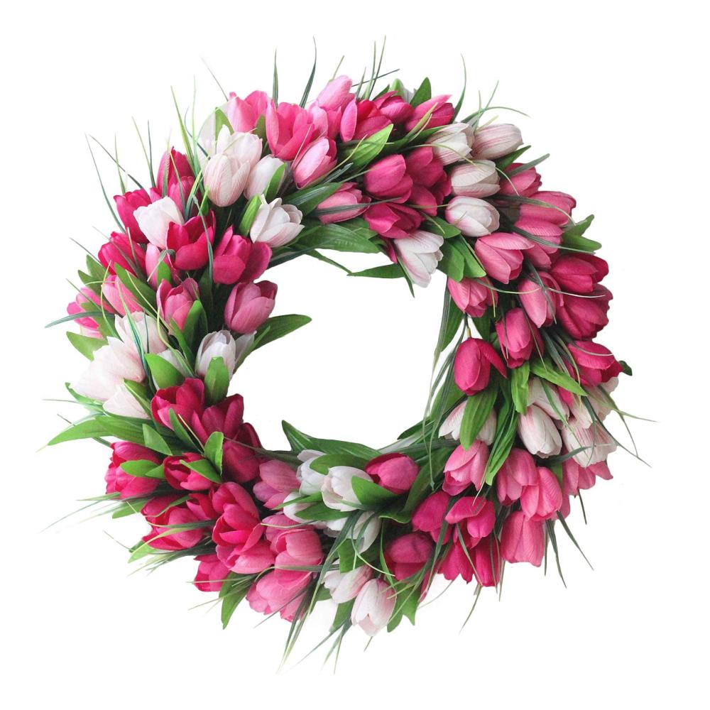 Sommer-Türkränze: handgefertigt auf einer natürlichen Rankenbasis und hochwertigen Polyester-Tulpenköpfen. Sicher, es wird Ihr Frühlings- und Sommerhaus erhellen. Und es wird das perfekte Geschenk für die Hauseinweihe.