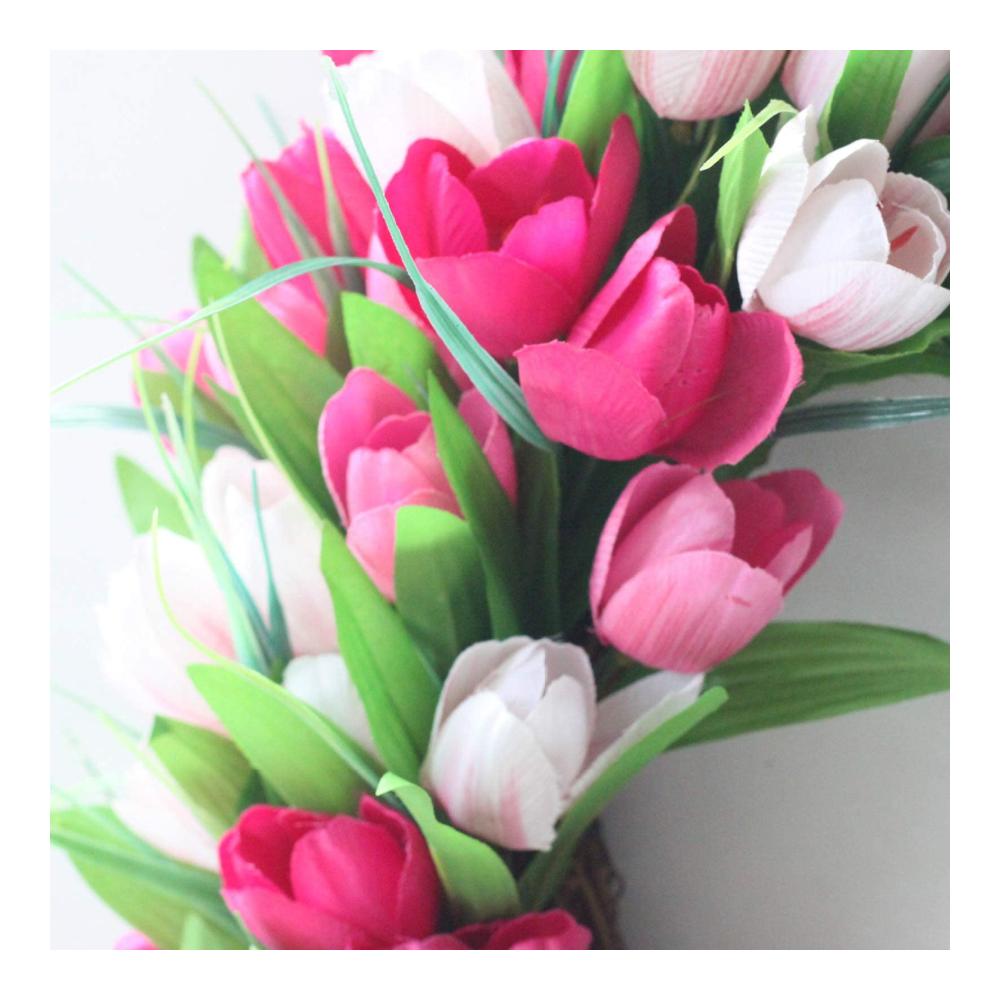 Handgefertigt auf einer natürlichen Rankenbasis mit hochwertigen Polyester-Tulpenköpfen, bringt dieser Sommer-Kranz ein strahlendes Licht in Ihr Zuhause und eignet sich auch hervorragend als Geschenk zur Hauseinweihung.