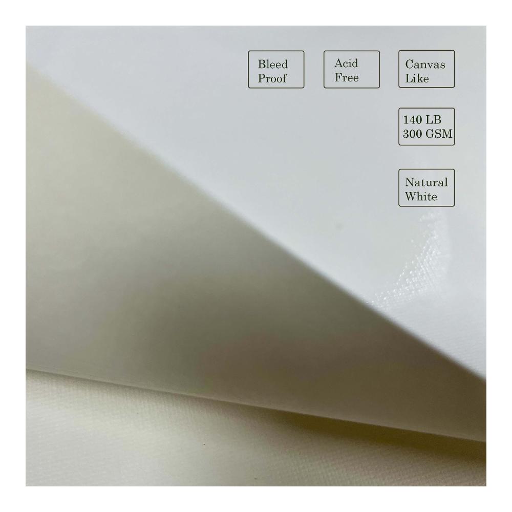 Leinwand-OptikEs ist eine vielseitige Option für Künstler, die eine leinwandähnliche Malfläche ohne Grundierung wünschen. | AusblutungssicherDie Farben sickern nicht auf die andere Seite durch, was für saubere und klare Linien auf jeder Seite sorgt, kein Gesso erforderlich, das Papier ist ölbeständig. | 300 g/m² schweres PapierDas hohe Gewicht des Papiers ermöglicht es, es ohne Verziehen oder Knicken zu bearbeiten, und bietet Künstlern eine stabile und zuverlässige Oberfläche, auf der sie arbeiten können. |