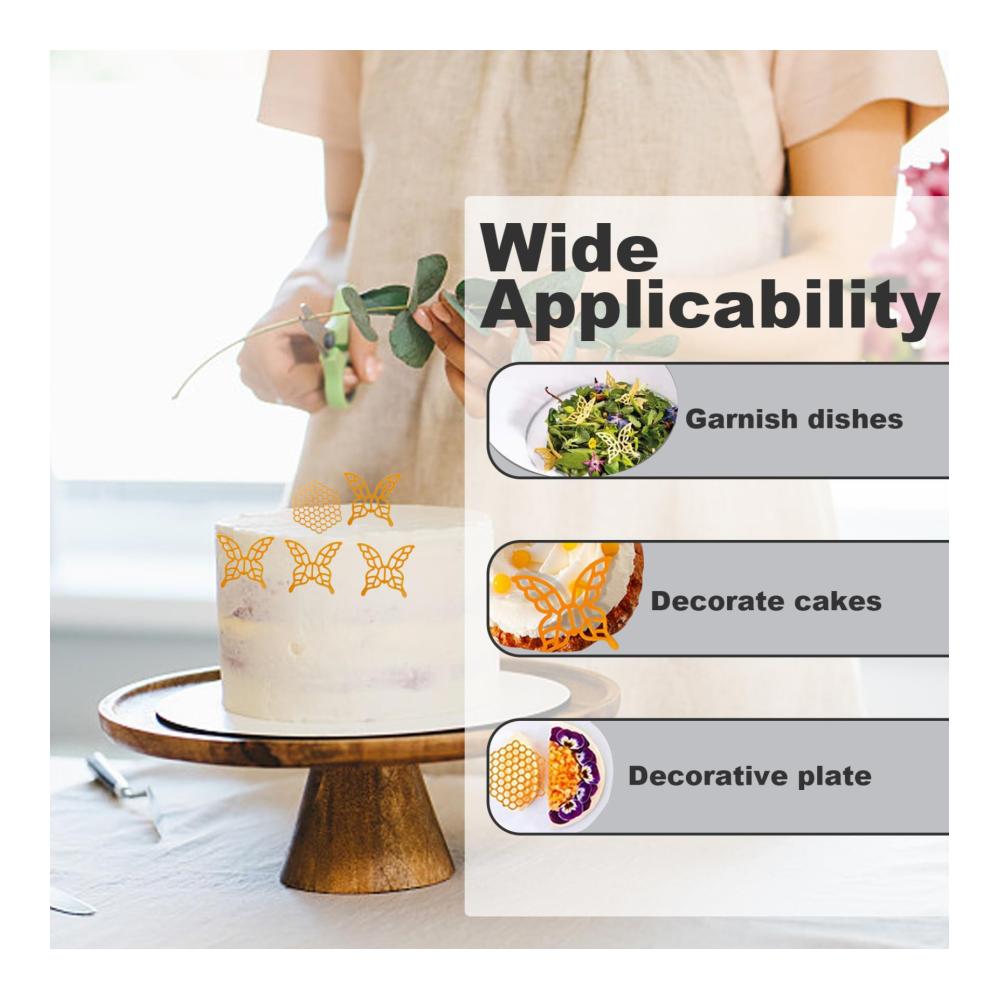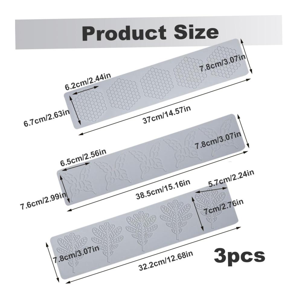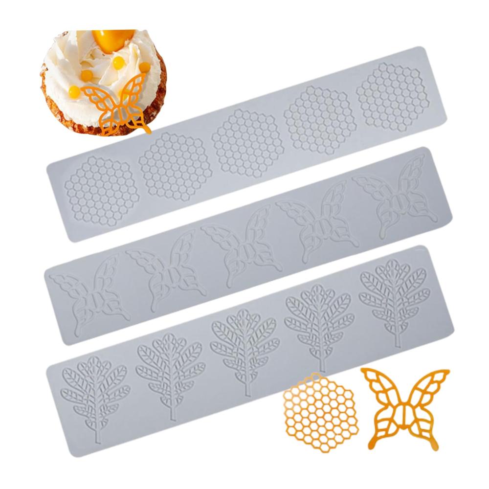Hausgemachte Freude: Jede Kuchendekorationsform verfügt über 3 verschiedene Formen aus hohlen Blättern, Schmetterling und Wabenform, sodass Sie 9 verschiedene Form -Spitze für Kuchen erzeugen können..Die Silikonform misst 38,5 x 7,8 cm/15,16 x 3,07 Zoll..Es ist sowohl für essbare als auch für ungenießbare Materialien geeignet und bietet endlose Möglichkeiten.