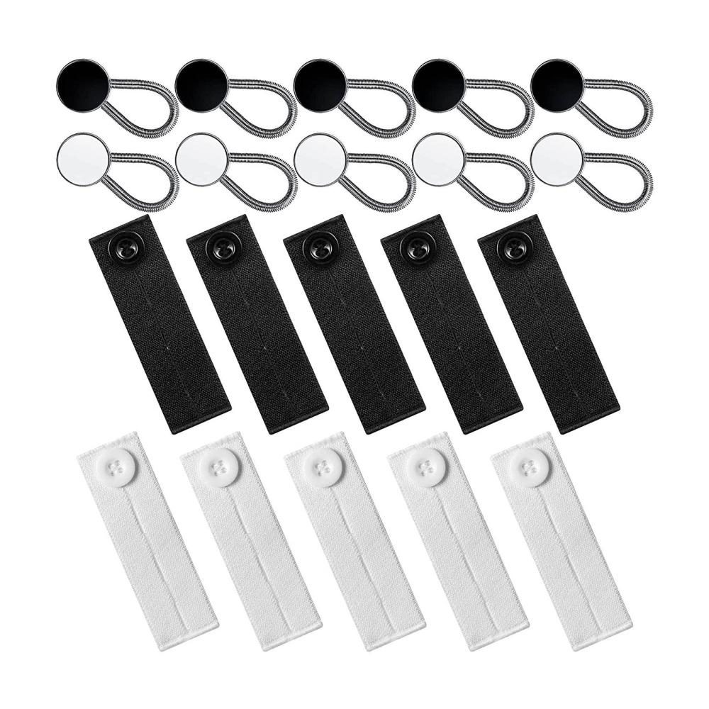 Praktischer Kombinationsanzug: Der Anzug verfügt über 20 Stück elastische Knopfverlängerungen, davon 10 Stück Jeansknopfverlängerungen und 10 Stück Herrenhemdkragenverlängerungen, die in Schwarz und Weiß erhältlich sind, mit ausreichender und vollständigen Kombinationen, um zu erfüllen Ihre täglichen Gebrauchsbedürfnisse