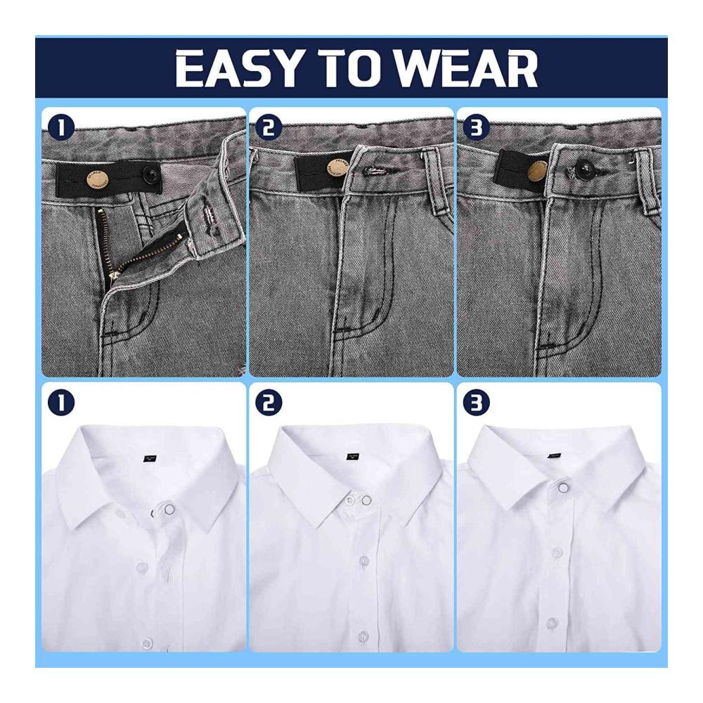 Einstellbar und einfach zu bedienen: Der Nackenexpander des Hemdes ist einfach zu bedienen. Sie können schnell und einfach zusätzlichen Platz schaffen, Sie den elastischen Kragenexpander mit dem vorhandenen Knopf am Hemd verbinden; An der Verlängerungslinie der Damenhose befinden sich 3 Schlitze, mit denen die Taille der Hose zur einfachen Verwendung auf 0,5 bis 2,5 verlängert werden kann