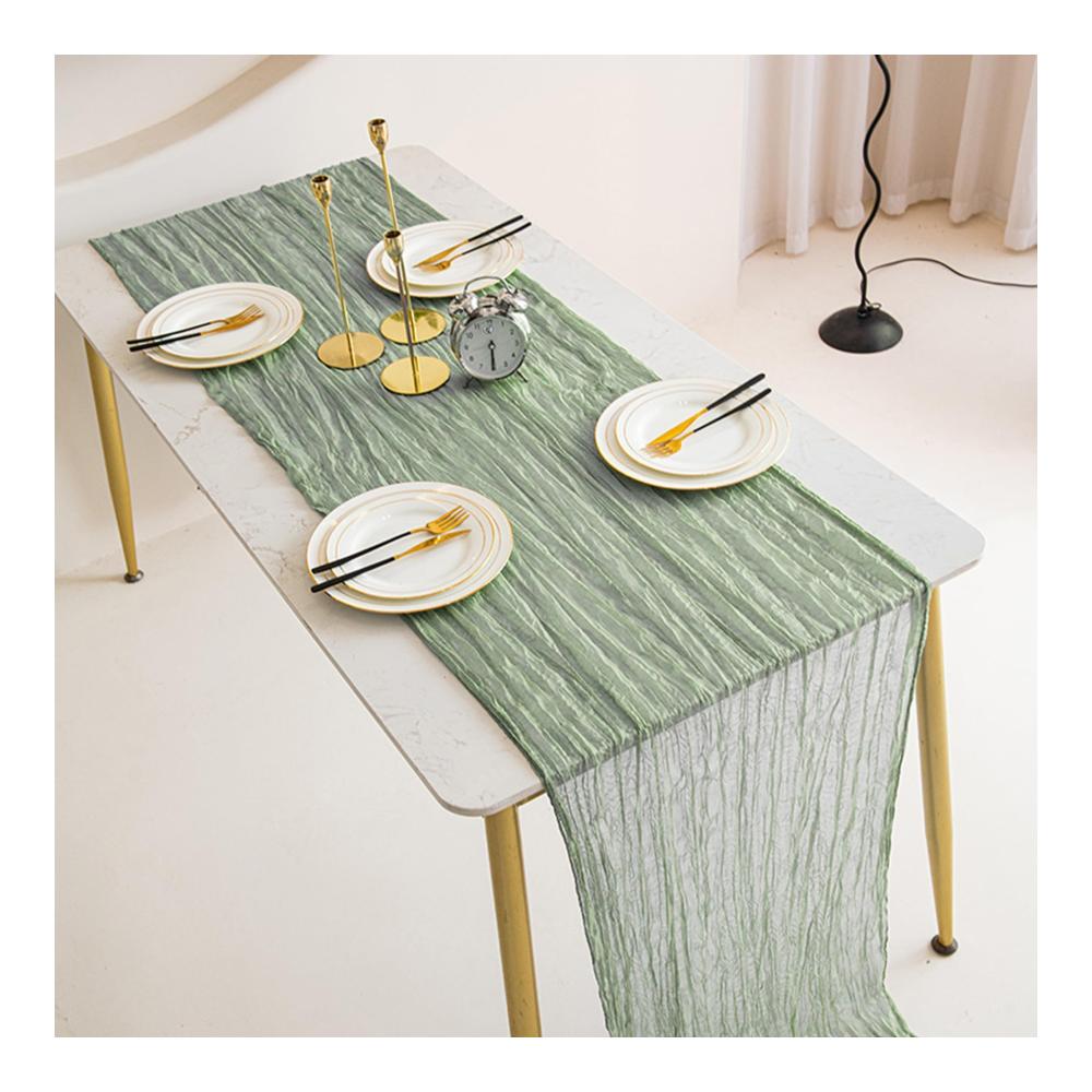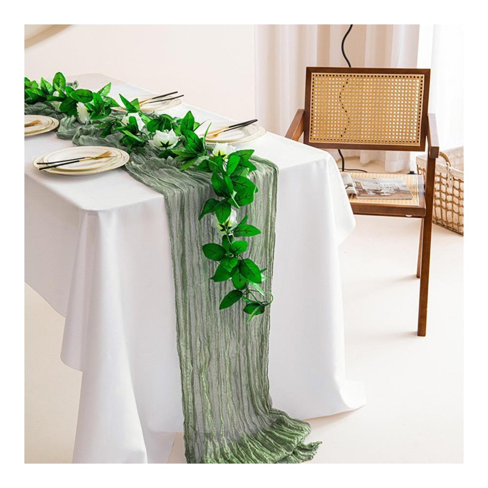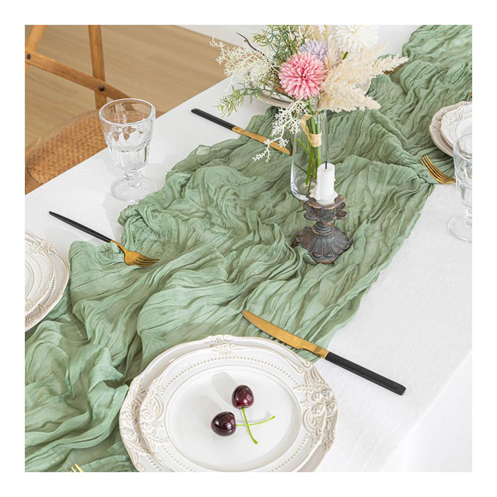 Unsere Tischläufer sind aus hochwertigem Gaze-Stoff gefertigt, der eine luftige und leichte Textur bietet. Die halbtransparente Eigenschaft verleiht Ihrem Tisch ein subtil elegantes Aussehen, während das Salbeigrün eine erfrischende und natürliche Note hinzufügt.
