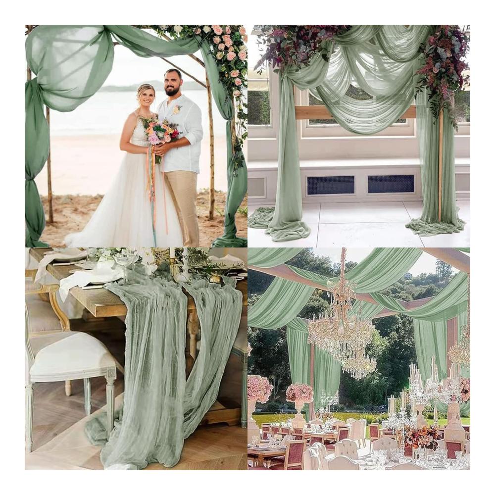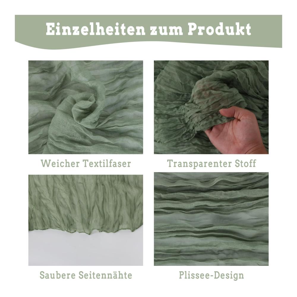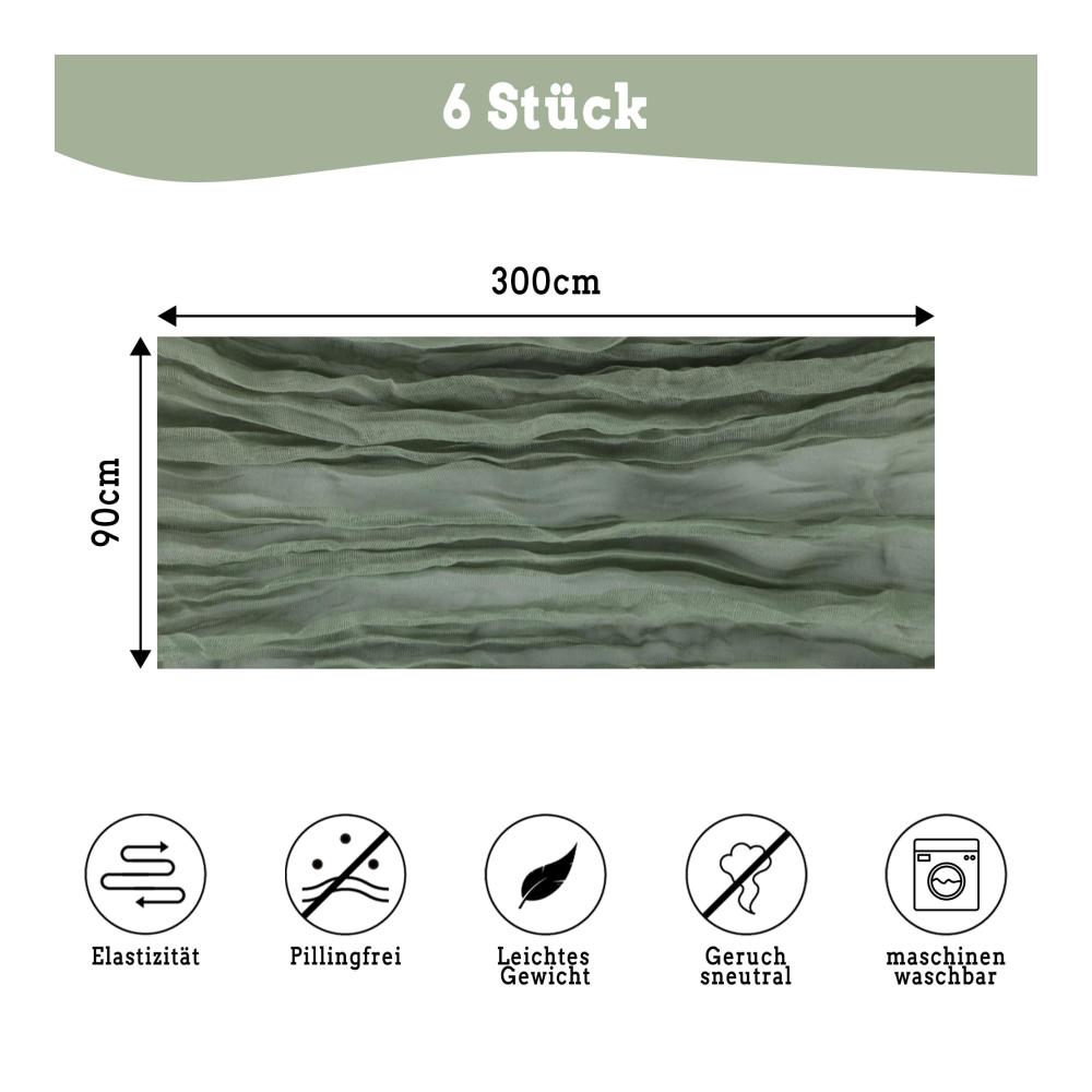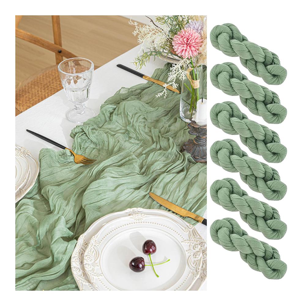 Verleihen Sie Ihrer Tischdekoration mit unserem Salbeigrünen Boho-Käsetuch-Tischläufer einen rustikalen Charme! Dieses Set enthält 6 halbtransparente Tischläufer aus Gaze-Stoff, die perfekt für Hochzeiten, Geburtstagsfeiern und andere besondere Anlässe geeignet sind.