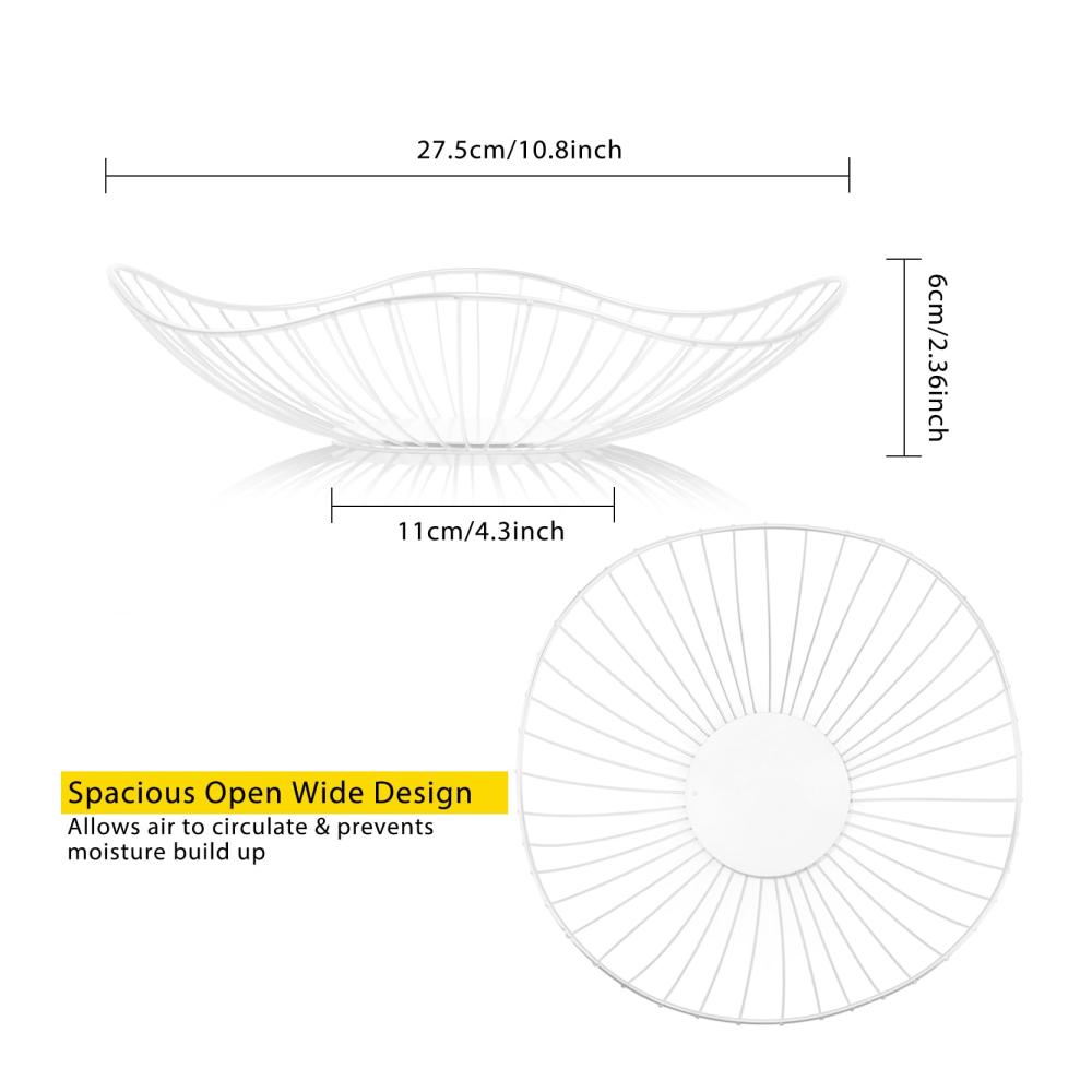 Perfekte Anzeige und sichere Aufbewahrung: Das breite offene und Mesh-Design lässt Luft fließen, um Obst länger frisch zu halten, die Metalldraht Obstschale ist perfekt zum Aufbewahren und Präsentieren von Obst, Snacks, Gemüse, Potpourris oder Haushalts- und Toilettenartikeln.