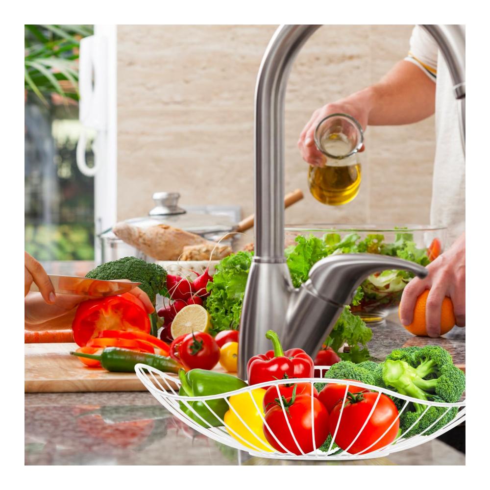 Umweltfreundlich: Der Obstkorb aus Metall hilft, Umweltauswirkungen zu reduzieren. Durch die Verwendung eines wiederverwendbaren Korbs anstelle von Einweg-Plastikbeuteln können Sie Abfall und den CO2-Fußabdruck minimieren.