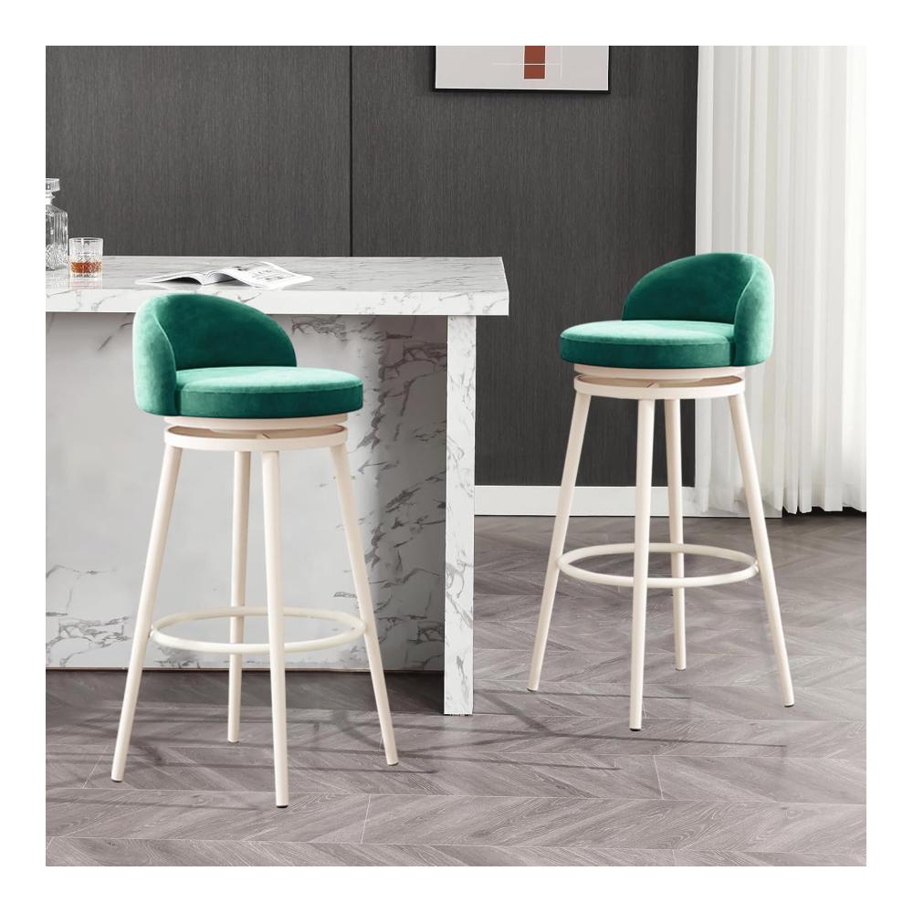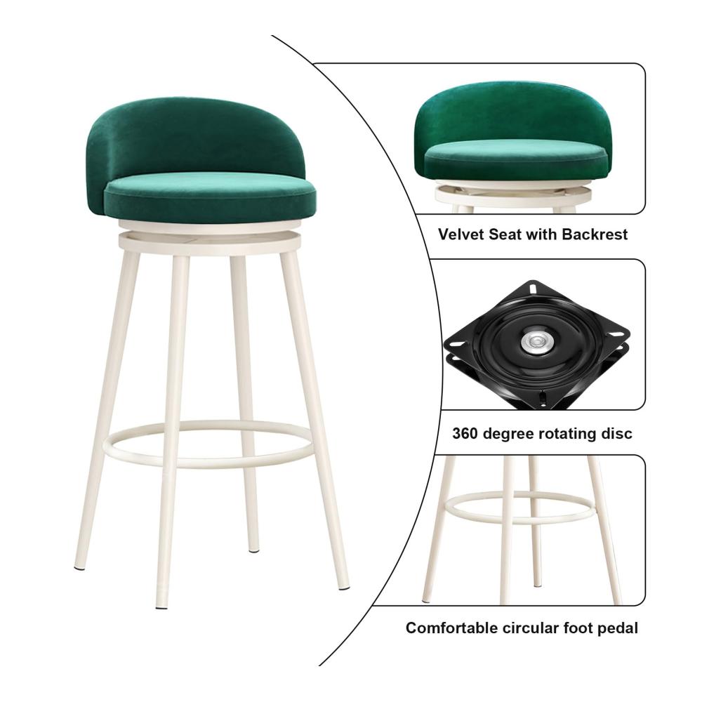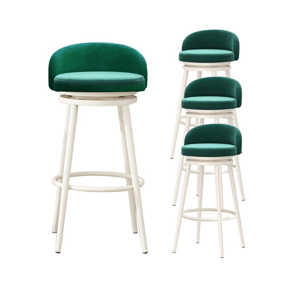 Unsere 360-Grad-drehbaren Barhocker in Thekenhöhe mit niedriger Rückenlehne sind ein 4er-Set moderner Samt-Kücheninselstuhlhocker mit weißen Metallbeinen und Fußstütze für das Esszimmer in der Hausbar in Grün. Erleben Sie Samtkomfort und Eleganz mit unserem Set. Dank der 360°-Drehfunktion können Sie sich frei bewegen, während die stabile Struktur und die verstellbaren Füße für Stabilität sorgen. Entspannen Sie sich mit den Samtkissen und der ergonomischen Fußstütze. Vielseitig einsetzbar für Restaurants, Küchentheken und Cafés.