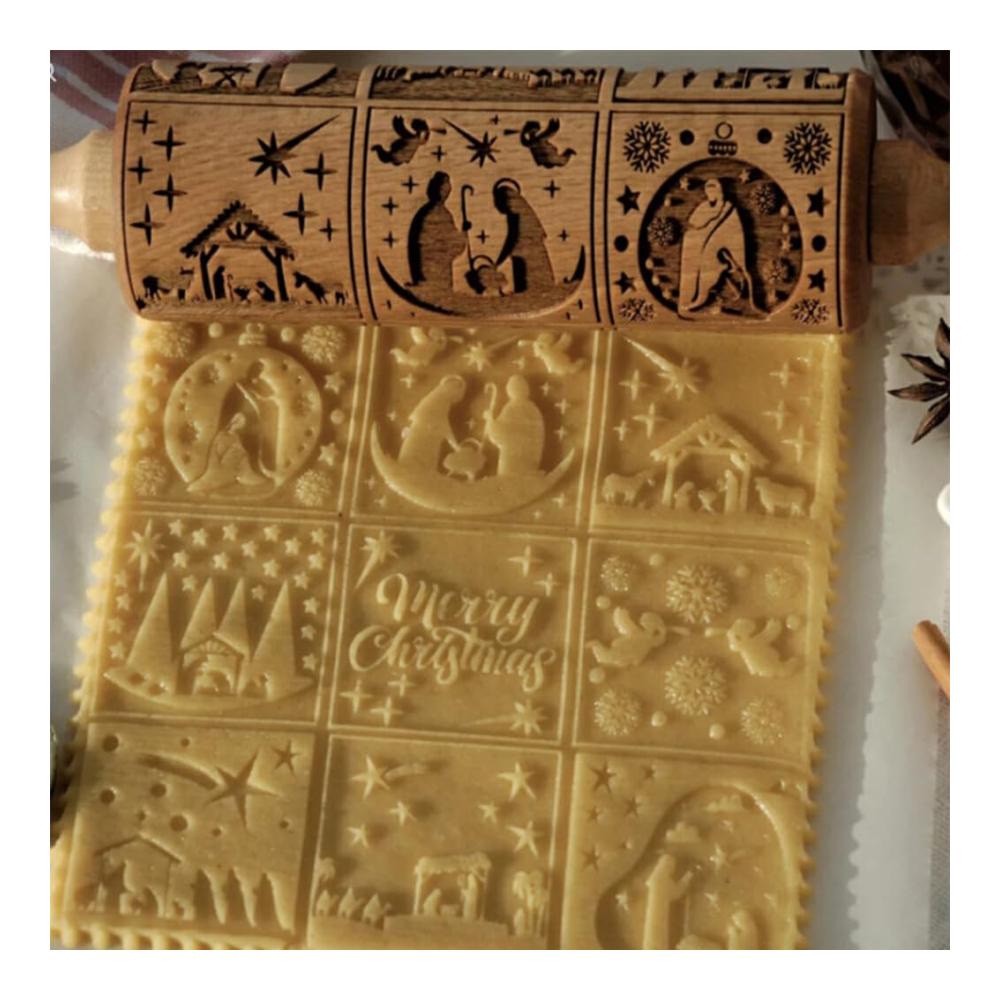 Anspruchsvolle Herstellung: Die zarten Muster auf unserem Nudelholz sind detailliert eingraviert und verleihen Ihren Backwaren einen Hauch von Eleganz. Sein weihnachtliches Thema macht es zu einer Dekoration für das Festtagsbacken