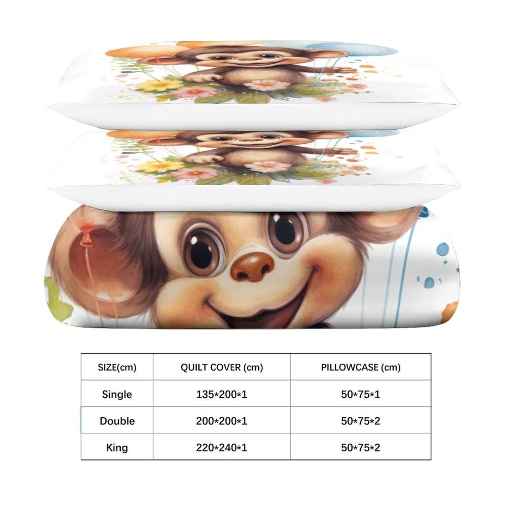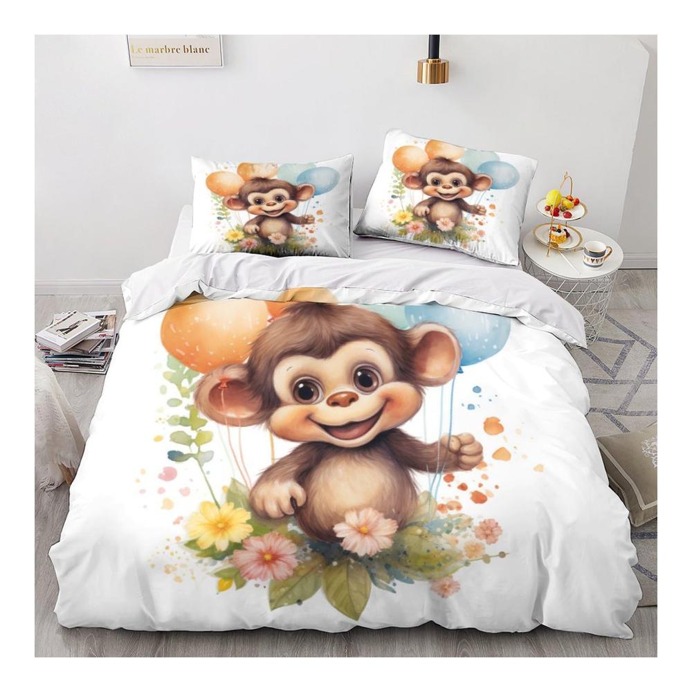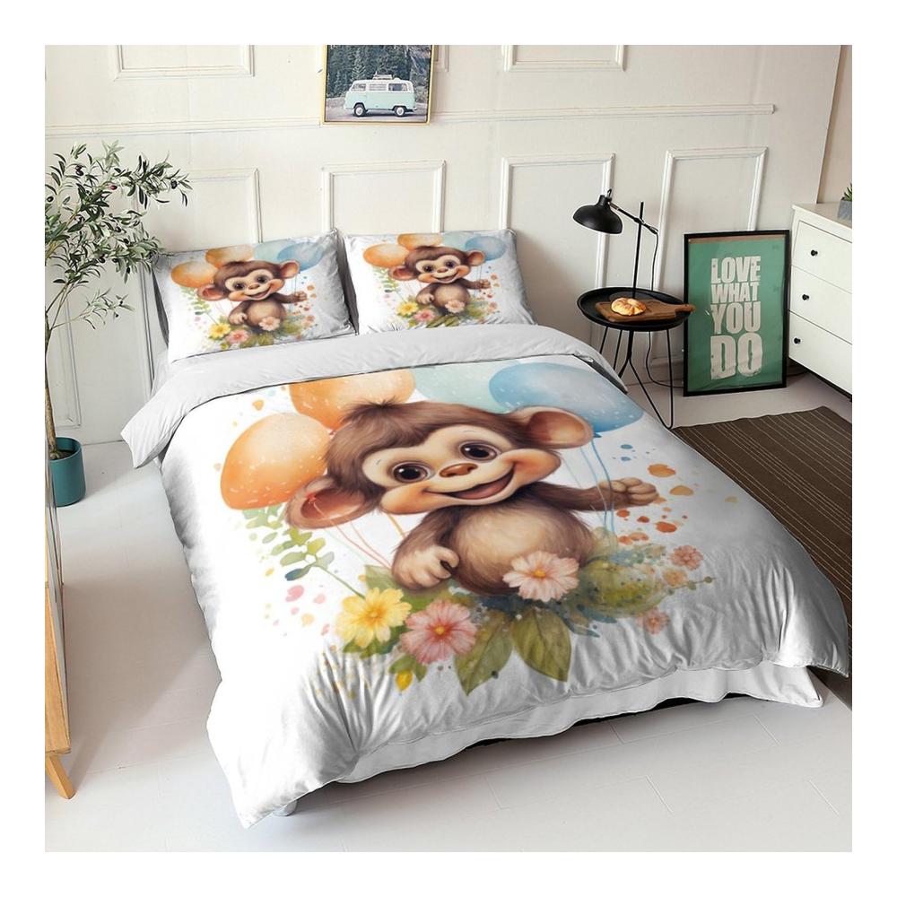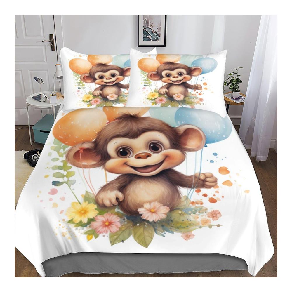 Entdecken Sie das niedliche und kuschelige Kawaii Affe Bettwäsche Set für Kinder, Jungen und Jugendliche! Dieses 3-teilige Bettbezug-Set besteht aus hochwertiger Mikrofaser und umfasst einen Bettbezug mit einem entzückenden 3D-gedruckten Affenmotiv sowie passende Kissenbezüge mit Reißverschluss. Die weichen und luxuriösen Materialien schützen Ihre Bettdecke und bieten ein angenehmes Schlafgefühl das ganze Jahr über. Ein perfektes Geschenk für Ihre Lieben! Dank des versteckten Reißverschlusses und der hervorragenden Nähte ist das Set einfach zu reinigen und pflegen. Holen Sie sich jetzt das wildtier-inspirierte Bettwäsche-Set und verwandeln Sie Ihr Schlafzimmer in eine gemütliche Oase!