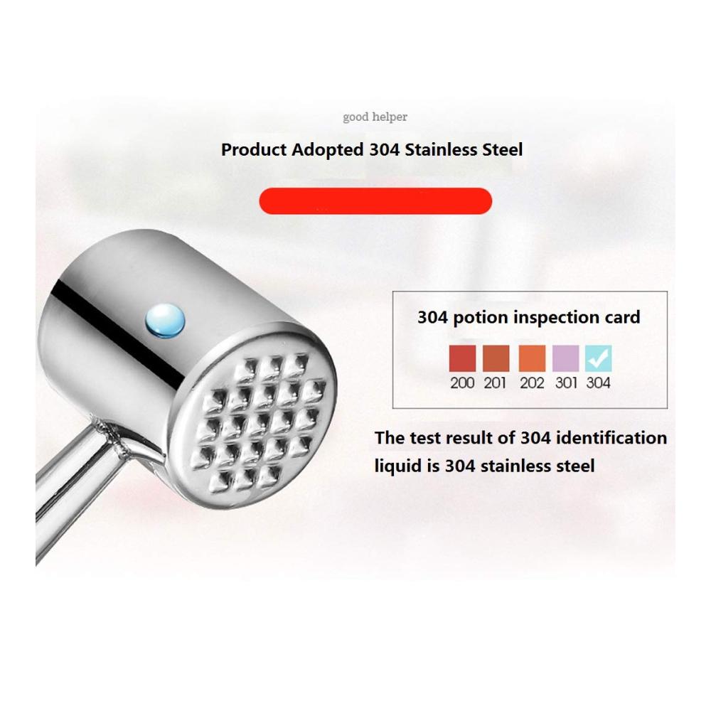 Produktkategorie: Fleischhammer. Material und Farbe: Dieser Fleischhammer besteht aus Edelstahl 304, die Farben sind Primärfarben (Silber). Größen: Wie in den obigen Bildern gezeigt, aber von Hand gemessen, können einige sehr kleine Fehler in den Daten auftreten. Methode zur Verwendung des Fleischhammers: 1, beide Seiten des gesamten Fleisches gleichmäßig hämmern und nicht zu viel Kraft benötigen. Wenn der Umgang mit den Stellen Muskeln hat, kann ein paar zusätzliche Male hämmern. Warnung: Bitte benutzen Sie den Hammer nicht, um jemanden zu verletzen, dieser Hammer hat die Kraft dazu Leute verletzen. Und halten Sie es von Kindern fern.