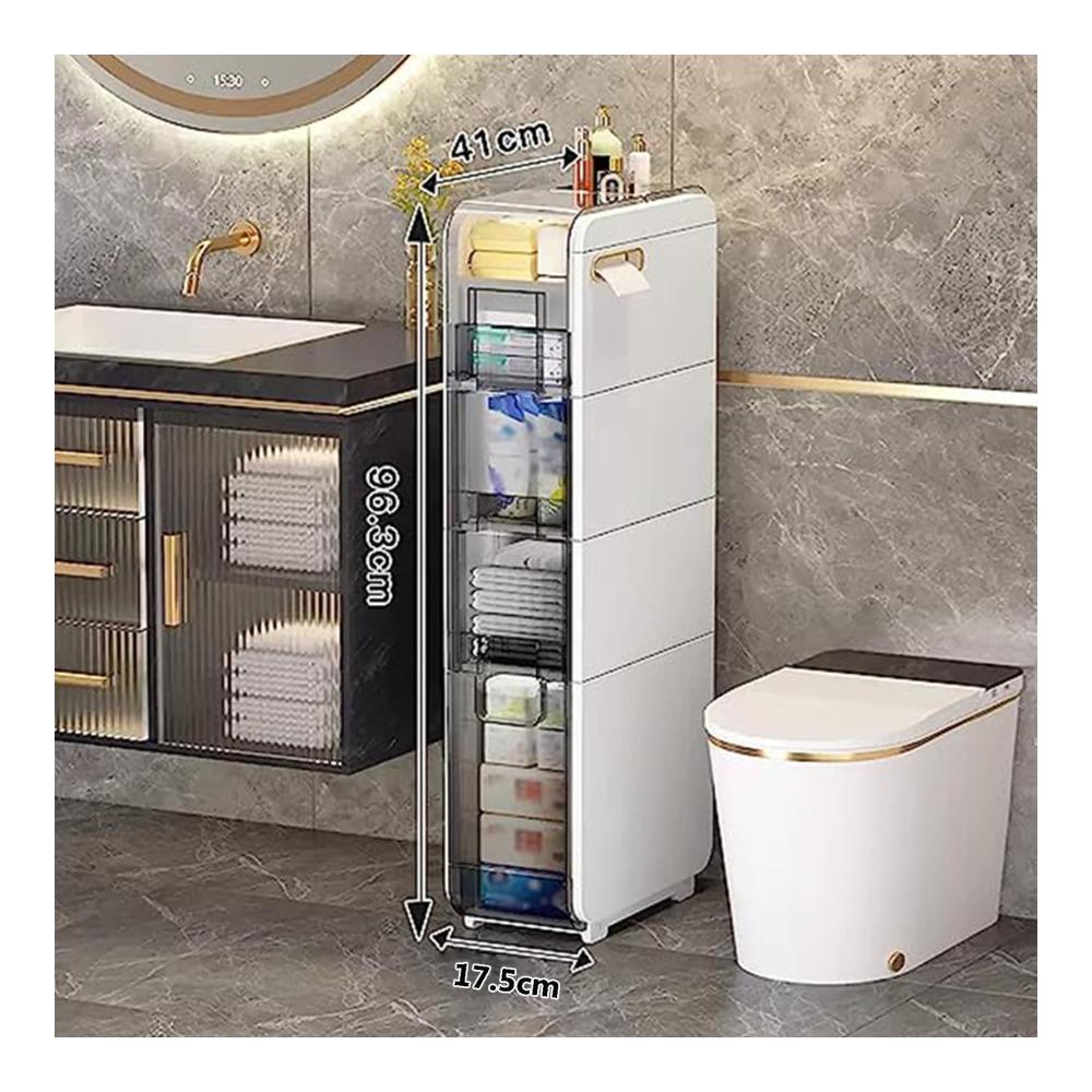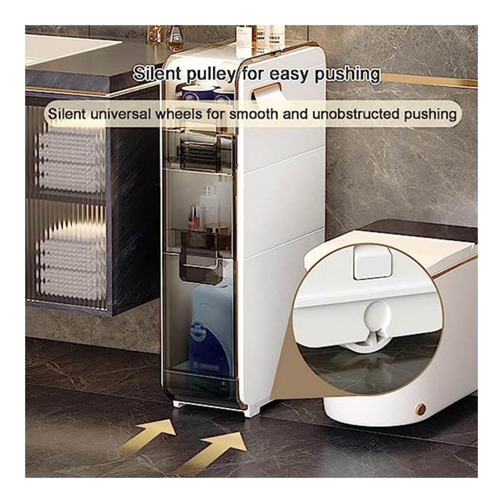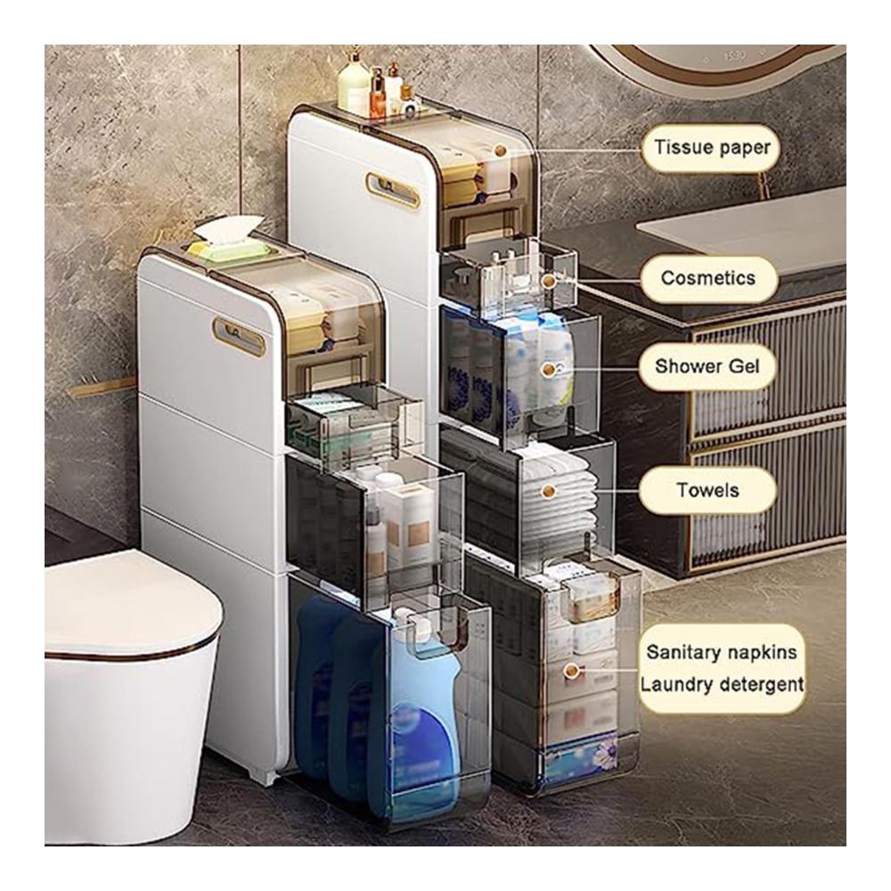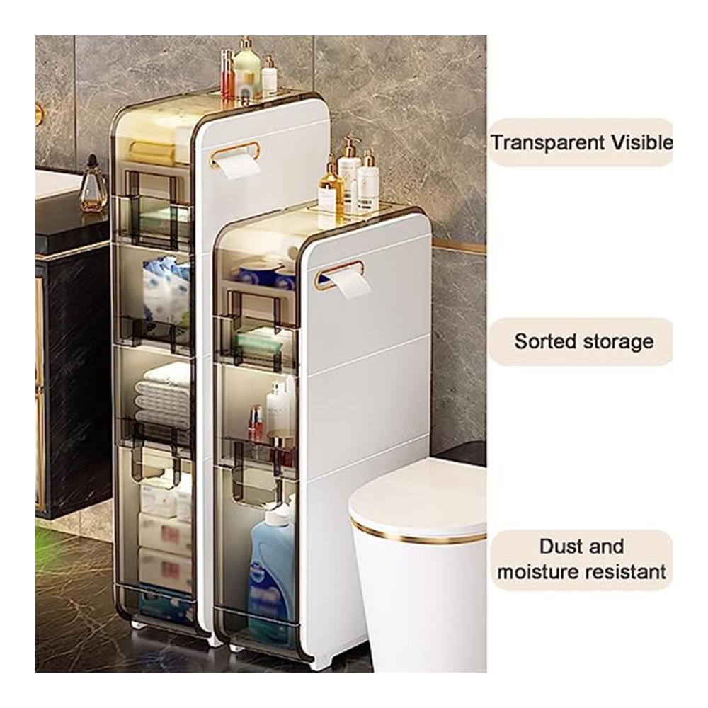 Der rollbare kleine Badezimmerschrank mit Schubladen eignet sich perfekt für die Aufbewahrung unordentlicher Kleinigkeiten und bietet gleichzeitig zusätzlichen Platz für Ihr Zuhause. Nutzen Sie jede Ecke des Raumes voll aus und halten Sie alle Gegenstände staubfrei und ordentlich! Warum uns wählen? EINFACH ZU SÄUBERN Der wasserdichte PP-Aufbewahrungsschrank über der Toilette hält den Inhalt effektiv trocken, lässt sich leicht reinigen und kann auch in feuchten Badezimmern lange verwendet werden. RIEMENSCHEIBENDESIGN Die Schublade ist an der Unterseite mit Riemenscheiben ausgestattet, die sich problemlos herausziehen lassen, ohne dass der gesamte Schrank entfernt werden muss. VERWENDEN SIE TIPPS Passen Sie die Platzierungsrichtung des Toilettenpapiers an. Es wird empfohlen, es sanfter nach oben zu strecken, um einen Papierbruch zu vermeiden. ♦Spezifikationen √Name: Multifunktionaler ultradünner Lagerturm √Typ: 2 Schubladen, 3 Schubladen, 4 Schubladen √Material: PP ABS √Produktgewicht: 4 kg, 5 kg, 7 kg √Ob es Riemenscheiben gibt: Ja ♦Paket beinhaltet 1 x Badezimmer-Schubladen-WC-Seitenschrank