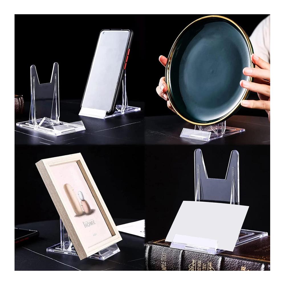 Entdecken Sie die Vielseitigkeit dieser Staffeleien: Unsere transparenten Acryl-Tellerständer bieten eine ansprechende Präsentation für Ihre elektronischen Produkte, Fotodisplays, Rahmen und Kochbücher.