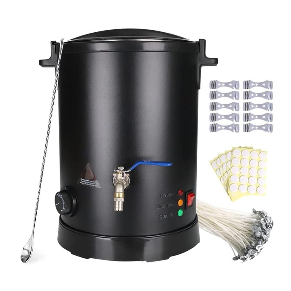 Wachsschmelzer zum Selbermachen von Weihnachts-, Hochzeits-, Partykerzen und Feiertagsdekorationskerzen. Es ist speziell für Liebhaber der Kerzenherstellung konzipiert, eignet sich aber auch für Anfänger, egal ob Erwachsene oder Kinder. Dies ist ein wunderbares Geschenk für Freunde, Familie und sich selbst.Spezifikationen:Produktname: KerzenschmelzmaschineMaterial: Edelstahl 304Spannung: 110V/220VLeistung: 1100 WFassungsvermögen: 8 lTemperaturregelung: 30°C-110°C/86°F-230°FWachsschmelzzeit: 15–40 MinutenFunktioniert mit Sojawachs, Paraffinwachs, Kokoswachs und BienenwachsIm Lieferumfang enthalten: Schmelzgerät *1, Rührlöffel *1, Dochtset *100, Dochthalter *10Vorsichtsmaßnahmen:1. Während des Wachsschmelzvorgangs ist es Kindern und Haustieren strengstens untersagt, sich zu nähern, und die Maschine sollte stabil aufgestellt werden.2. Es sollte jederzeit während des Schmelzvorgangs beobachtet werden. Wenn Sie auf halbem Weg gehen müssen, schalten Sie bitte den Strom aus.