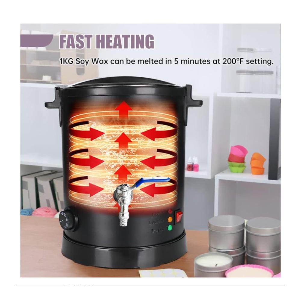 【Schnelle Schmelzzeit】 Dieser Wachsschmelzer in handelsüblicher Qualität zeichnet sich durch schnelles Erhitzen und Schmelzen von Wachs aus. Es kann 3,5 kg Sojawachs in nur etwa 20 Minuten bei 212 °F schmelzen, was es zu einem fantastischen Werkzeug für die Massenproduktion von Kerzen oder größere Projekte macht.