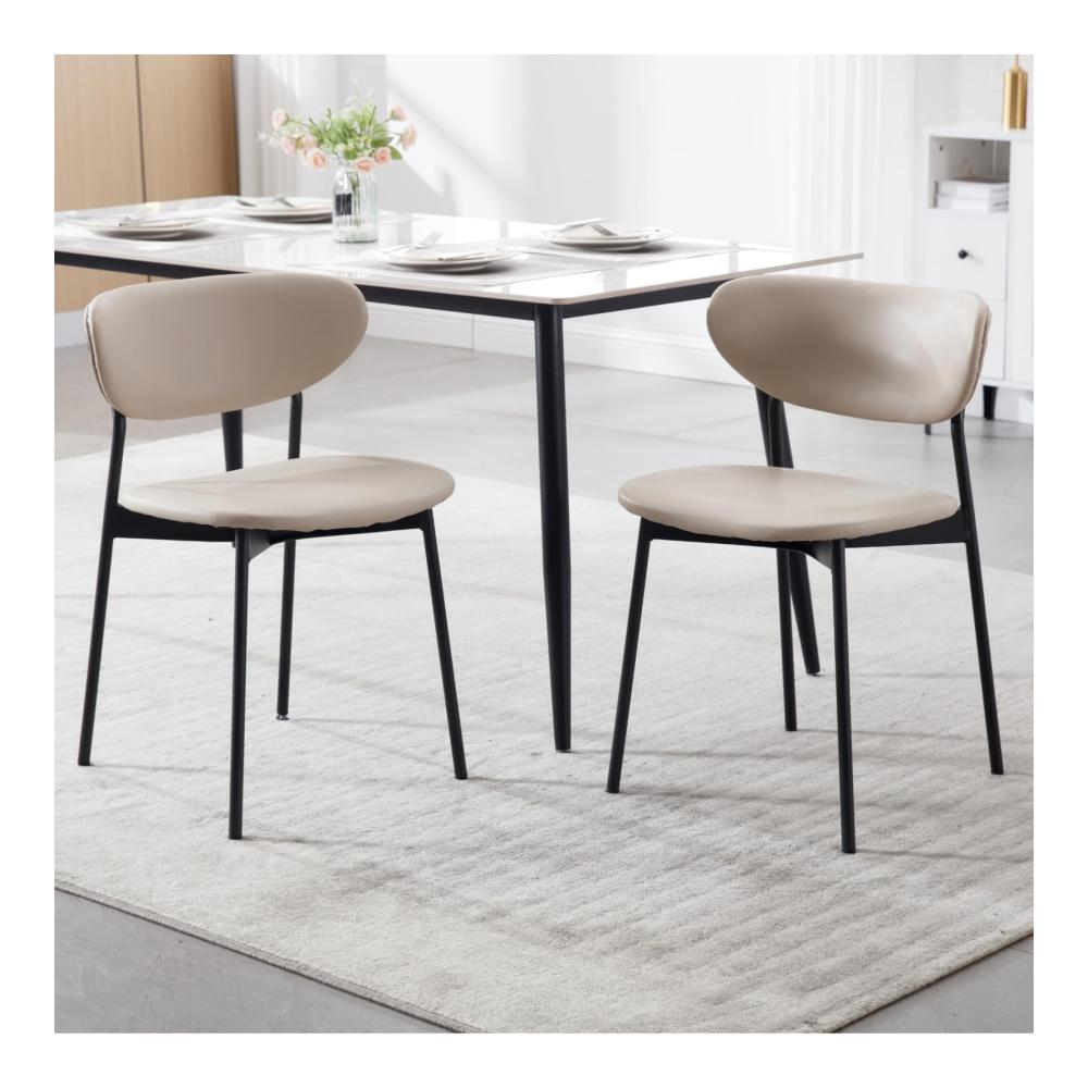 Modernes Design: Dieses zweiteilige Beistellstuhl-Set greift auf industrielle Elemente zurück, um Ihr Esszimmer zu vervollständigen. Mit gespreizten Beinen und einer glatten Silhouette sind diese Kunstleder-Esszimmerstühle ein hochmoderner Akzent.