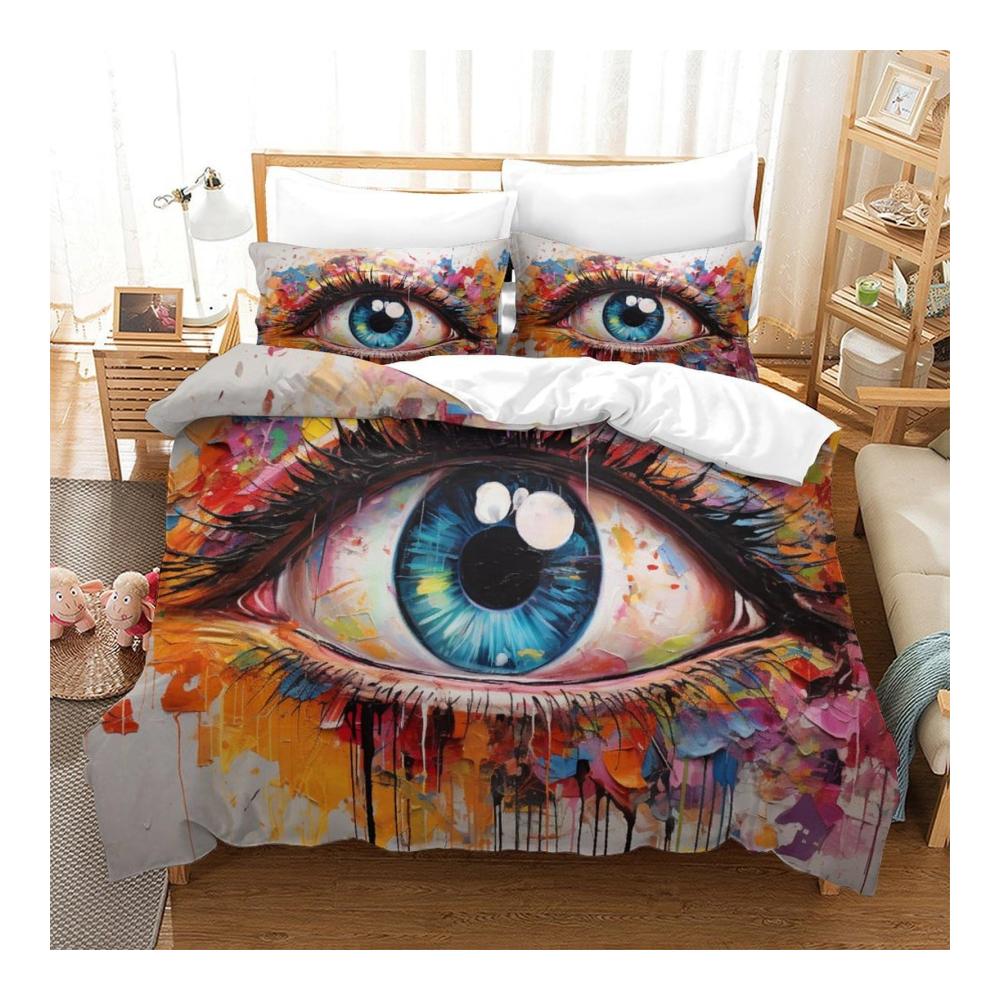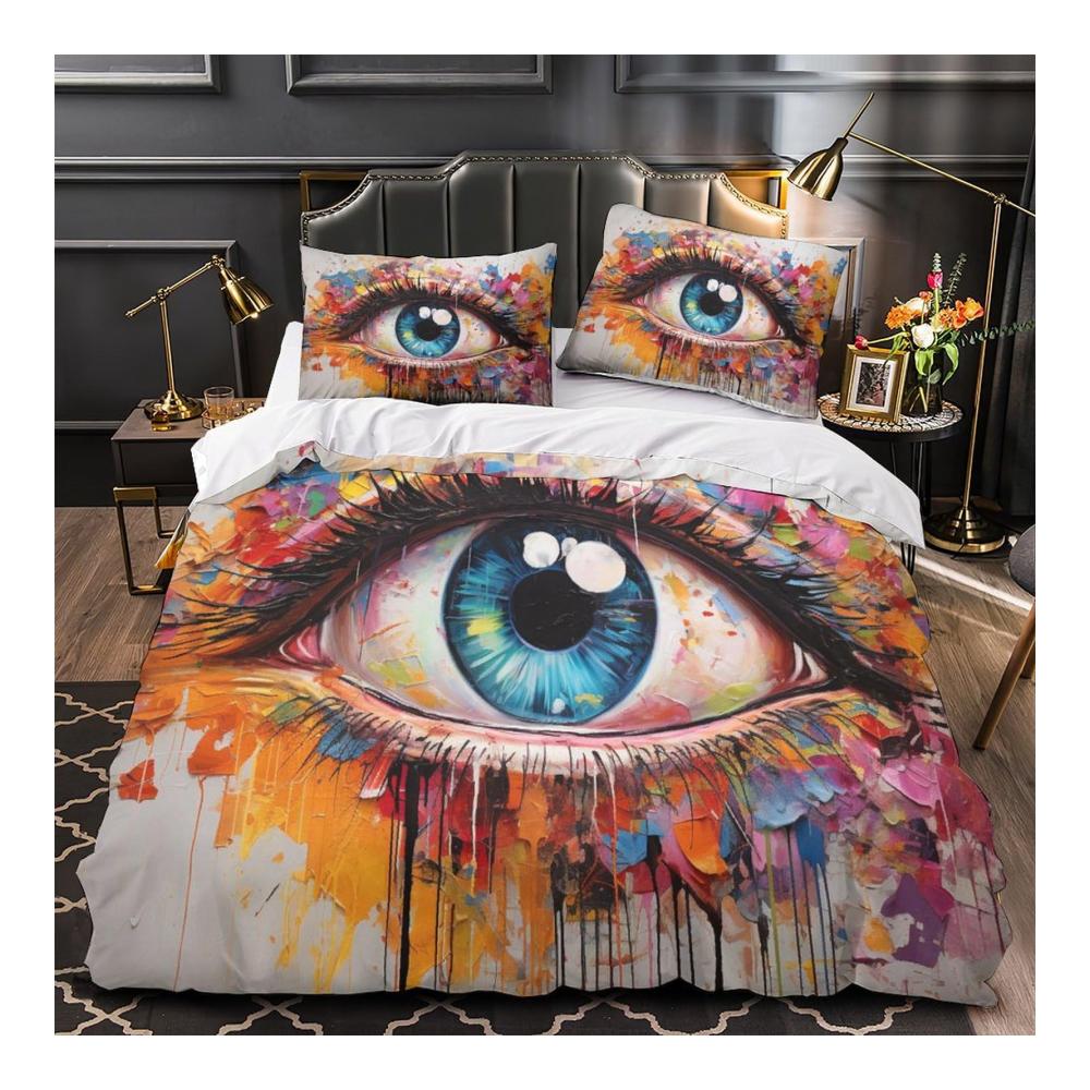 Entdecken Sie das Eye Bettwäsche 3D Bettwäsche Muster Bettbezug Schlafkomfort Microfaser Bettbezug Set 3-teilig für Kinder Jungen Mädchen Doppel (200x200cm). Unser Bettbezug-Set umfasst 1 Bettbezug: Doppelbett (200 x 200 cm) und 2 Kissenbezüge: 48 cm x 75 cm. Hergestellt aus 100% Polyester, bietet es langfristigen Komfort und ist für alle vier Jahreszeiten geeignet. Die 3D-gedruckten Designs verleihen Ihrem Schlafzimmer ein luxuriöses Aussehen, während der versteckte Reißverschluss und die gute Verarbeitung Langlebigkeit gewährleisten. Maschinenwaschbar und einfach zu reinigen. Erleben Sie erholsamen Schlaf mit unserem hochwertigen Bettwäsche-Set.