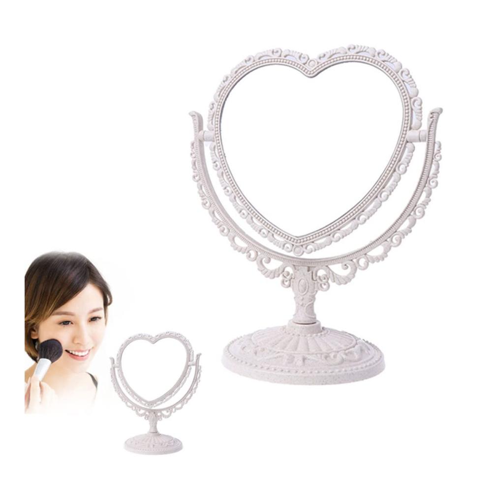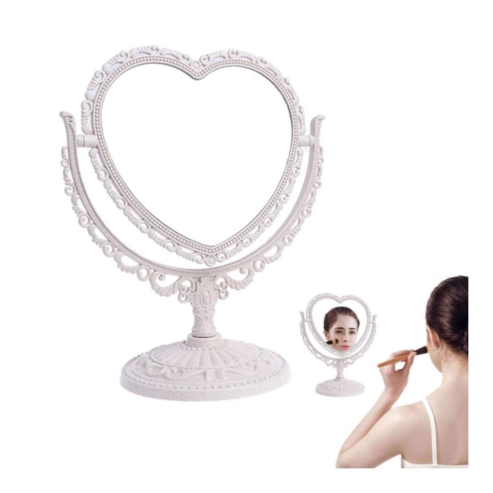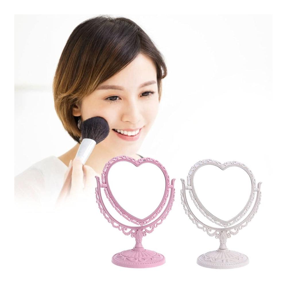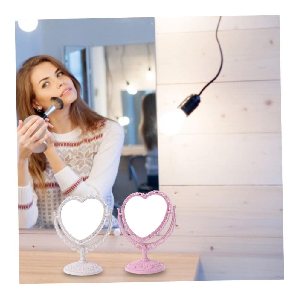 Kompakt und leicht – schöne Schnitzform, Kunststoffmaterial, Licht und tragbar..Der Spiegel ist abnehmbar und leicht zu tragen..Der doppelseitige herzförmige Make-up-Spiegel ist von hoher Qualität, feiner Verarbeitung, schön und praktisch.