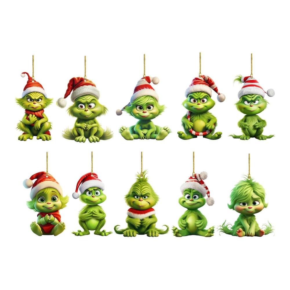 Verleihen Sie Ihrem Weihnachtsbaum mit diesen 10 niedlichen Baby Grinch Anhängern eine besondere Note! Hergestellt aus hochwertigem Acrylmaterial, fangen sie die Essenz des Grinch perfekt ein und verbreiten eine festliche Stimmung. Die handbemalten Details verleihen jedem Ornament einen einzigartigen Charakter und machen sie zu einem Blickfang auf Ihrer Feier.