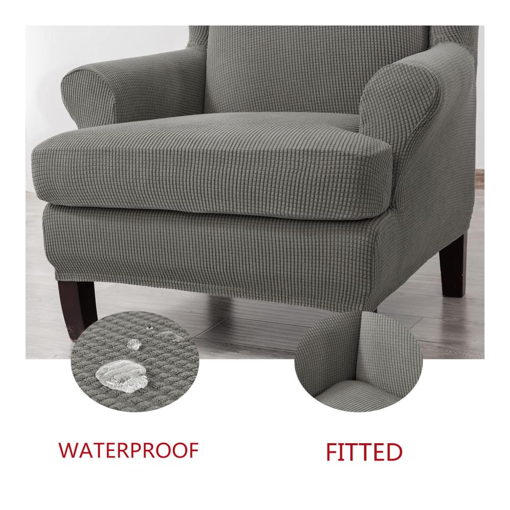 HIGH QUALITY WINGBACK SOFA COVER: 85% Polyester, 15% Spandex und mit zusätzlicher Imprägnierung. Ausgewählte hochwertige Stoffe, hochelastisch, atmungsaktiv, strapazierfähig und langlebig, weich und angenehm zu berühren, dank der Materialien, die wir verwenden, werden Ihre Möbel brandneu aussehen und wird nie verblassen.