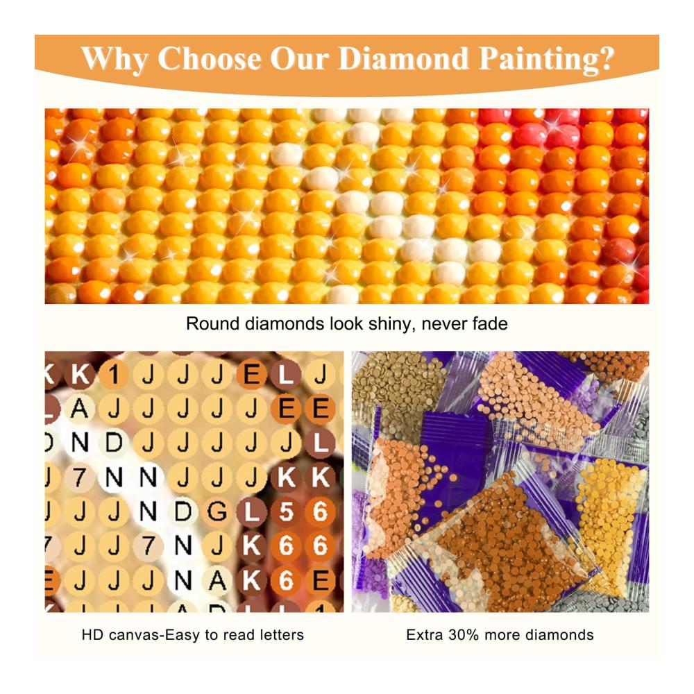 Diamond Painting Set: Unser Diamant Painting ist ein runder Diamant, der auf der Basis von Harzdiamanten verbessert wurde. Fertige diamant bilder können lange zeit leuchtende Farben bewahren und das gesamte Gemälde lebendiger wirken lassen.