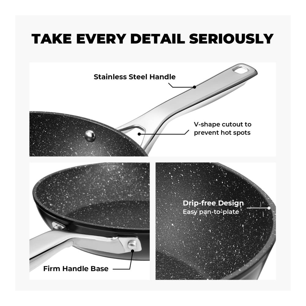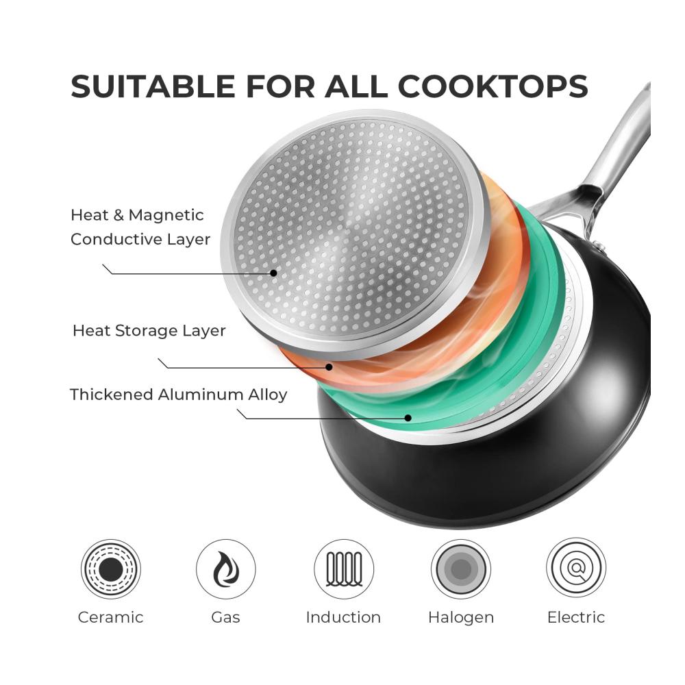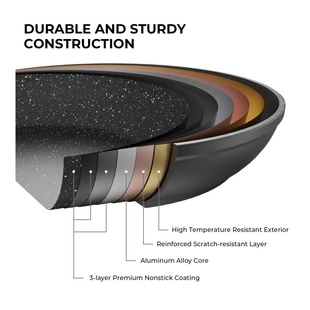 3-lagige Fadware professionelle Antihaftbeschichtung innen für müheloses Lösen von Lebensmitteln und einfache Reinigung.