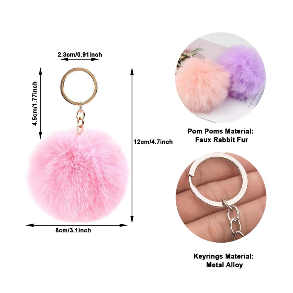 ⭐ Schlüsselanhänger Plüsch Material — Pom Poms von hoher Qualität imitiert Kaninchenfell Material mit flauschigen und weichen Handfeel, Pom Pom Bälle sind geruchsneutral und seine wird nicht verblassen; die Schlüsselringe mit Kette und biegeringe sind aus Metalllegierung, langlebig und praktisch