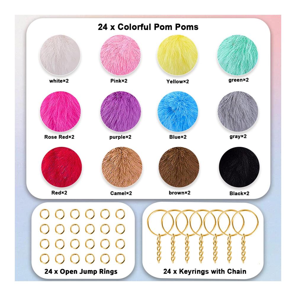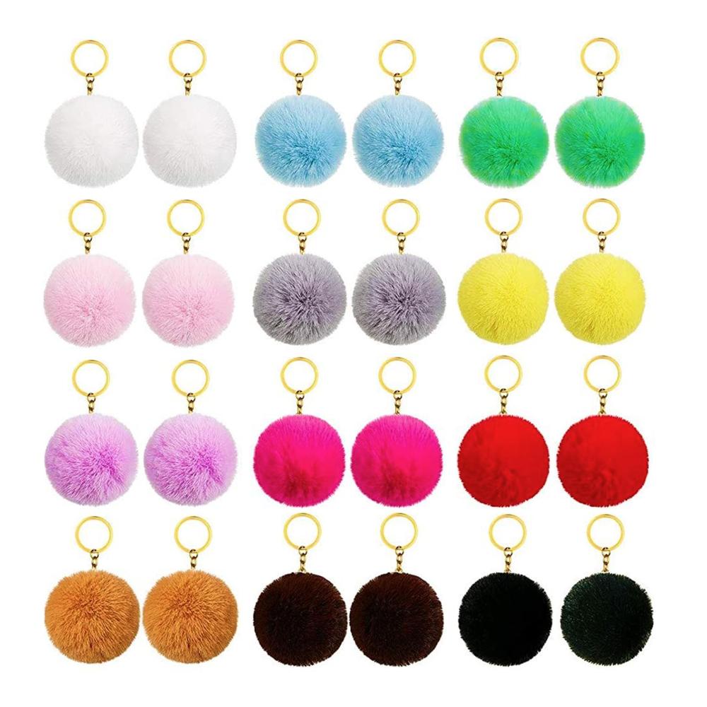 – Fluffy Pom Poms haben 12 verschiedene Farben, jede Farbe 2 Stück, zusammen mit dem Schlüsselring montiert, machen sie einen schönen Charme