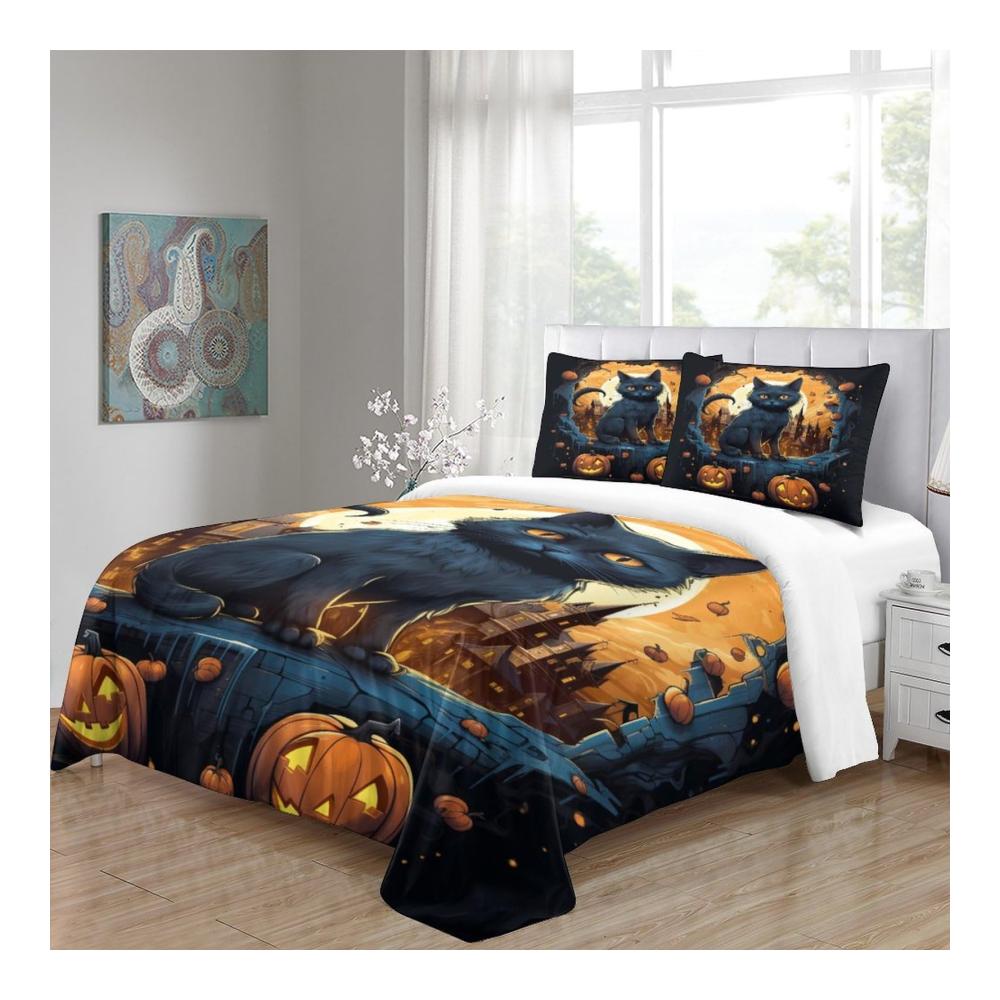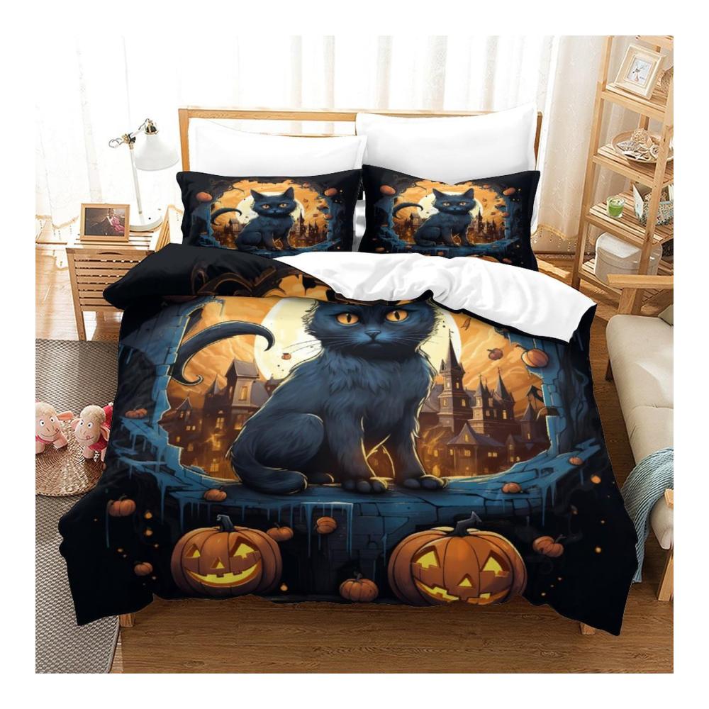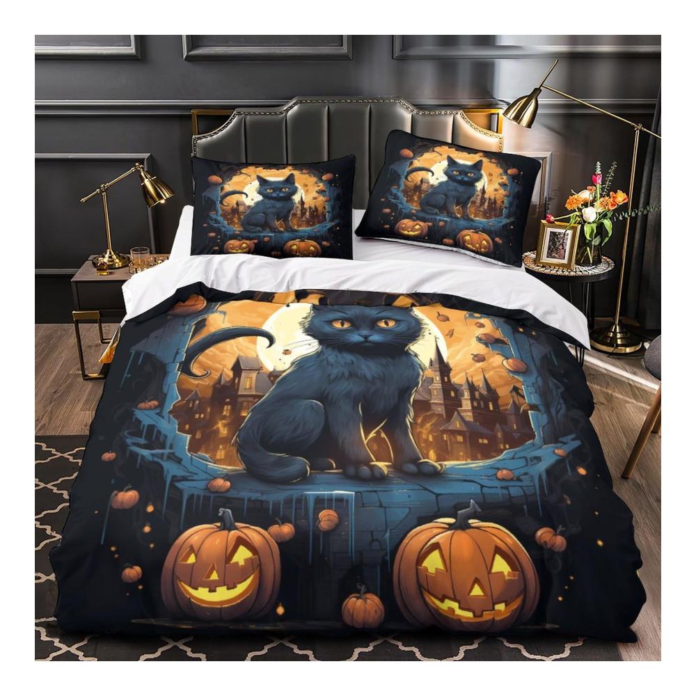 Tauchen Sie ein in den Gruselspaß mit unserem Halloween Bettwäsche Set! Das 3-teilige Set in King-Größe (220x240cm) verfügt über ein faszinierendes Kürbislampen- und Katzenmotiv auf Mikrofaser. Der Bettbezug und die Kissenbezüge sind mit einem praktischen Reißverschluss ausgestattet.