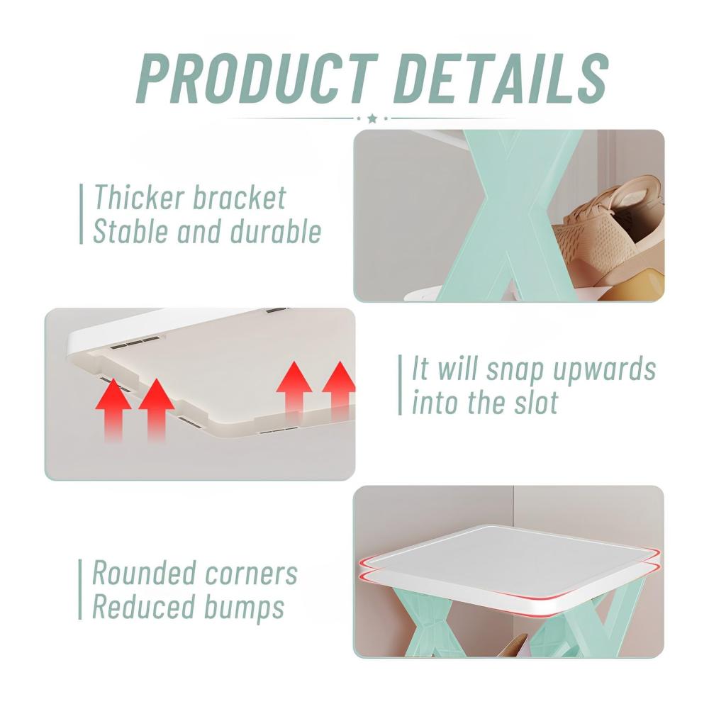 Schuhregal-Stil: Wir haben das Aussehen von Schuhregalen erneuert, indem wir den skandinavischen Stil und den Zusammenprall von Farben zu einem anspruchsvollen, leichten und einfachen Produkt kombiniert haben. Es ist für diejenigen, die das Aussehen eines Schuhregals wünschen.