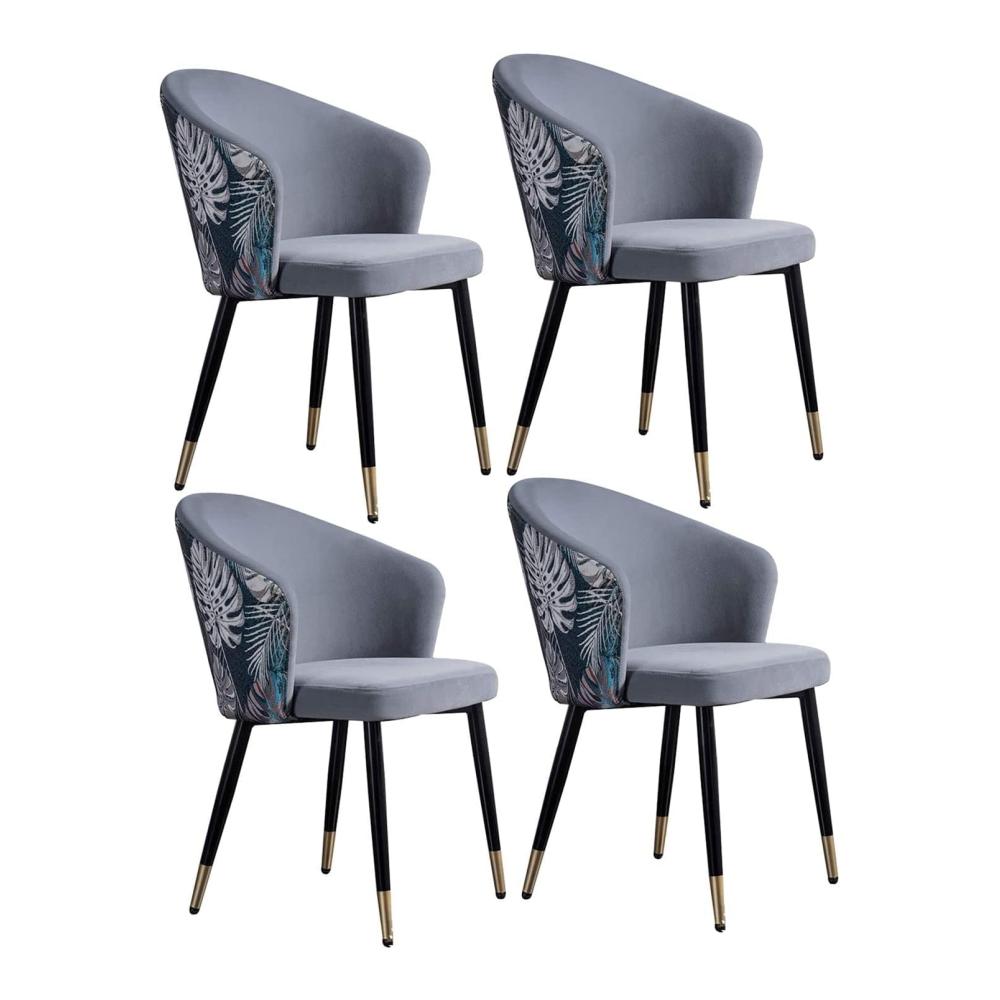 Erleben Sie ultimativen Komfort mit unseren Esszimmerstühlen aus Samt im 4er-Set. Der weiche Samtstoff des Kissens und der Rückenlehne, gefüllt mit hochdichtem Schwamm, bietet eine luxuriöse Sitzgelegenheit. Dank der ergonomisch geformten Rückenlehne und Armlehnen werden Hüfte, Rücken und Arme effektiv entlastet. Die stabilen schwarzen Stahlbeine sorgen für eine sichere Unterstützung und können bis zu 330 Pfund tragen. Die einfache Montage dauert weniger als 10 Minuten, und das moderne Design passt perfekt in jedes Ambiente