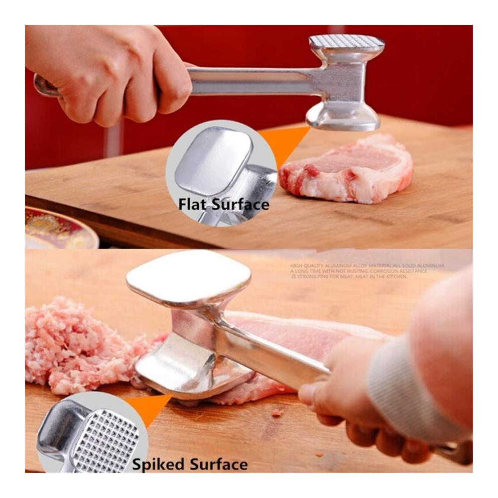 Glatte Seite: Die gegenüberliegende Seite des Fleischklopfer ist glatt zum Stampfen und Abflachen. Für Schnitzel.