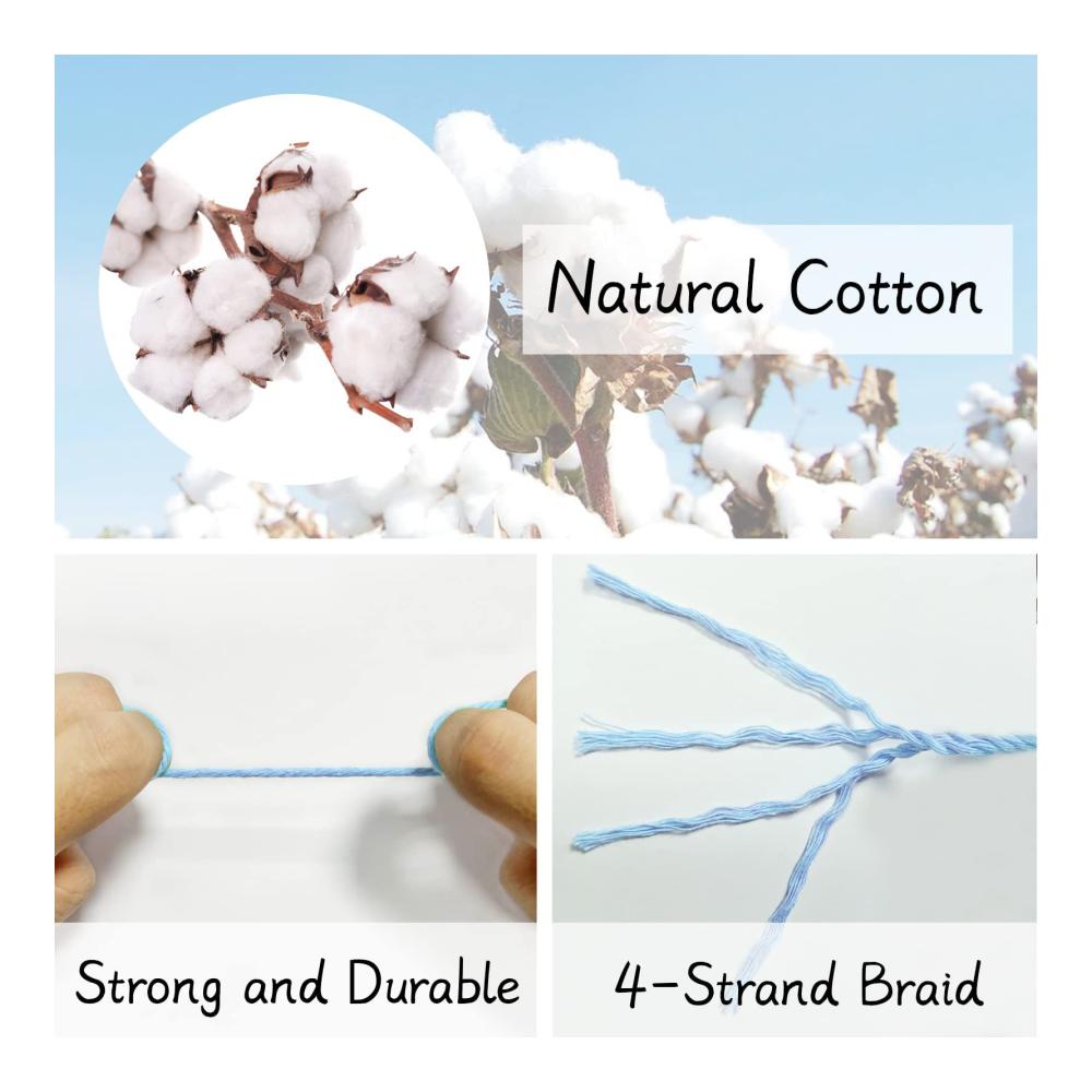 Natürliche Baumwolle: Das Makramee-Seil besteht aus natürlicher Baumwolle, weich genug zum Weben. Biologisch abbaubar, umweltschonend. Dehnt sich nicht, leicht zu weben, besonders geeignet für Handwerker und Bastler.
