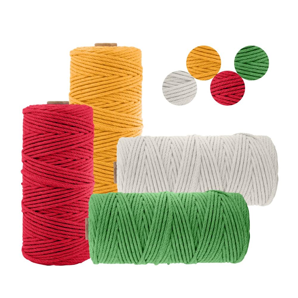 4er Makramee Garn Set: Sie erhalten 4 Rollen Makramee-Schnur (4 Farben), schöne Farbe und fühlt sich weich & natürlich an, 4-fach gedrehte Schnur, dick und robust, ideal für Makramee-Anfänger und Bastler.