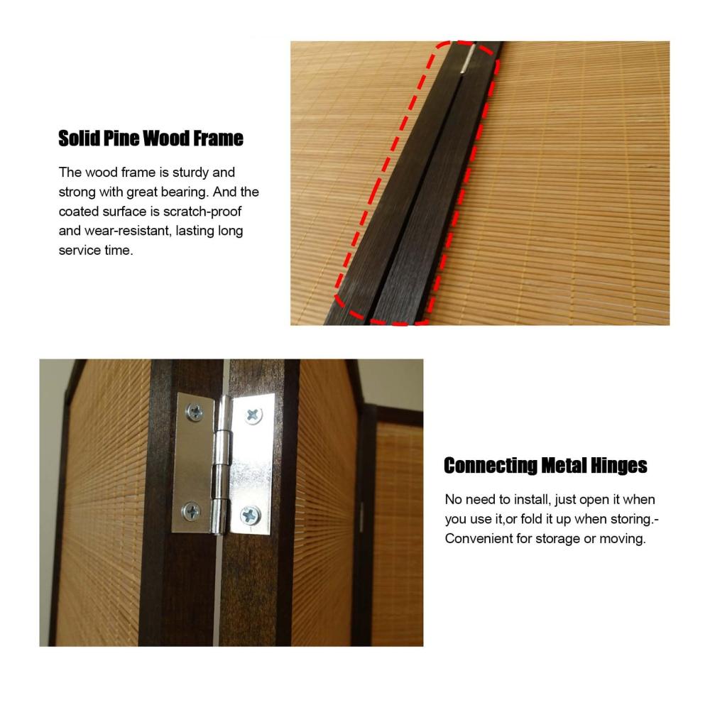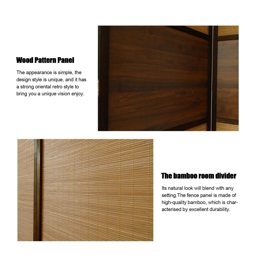 【Raumteiler aus Bambus】 Es ist aus reinem, natürlichem Bambus gewebt, wodurch das Zuhause naturnah wird. Der Holzrahmen ist robust und stabil mit hervorragender Tragfähigkeit. Und die beschichtete Oberfläche ist kratzfest und verschleißfest und hält lange.