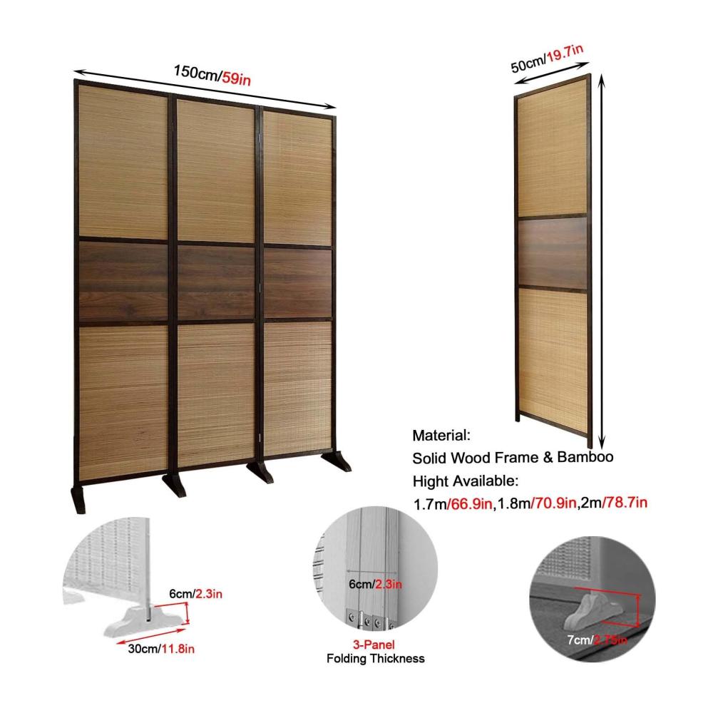– Produktbeschreibung:Suchen Sie etwas Privatsphäre? Diese Raumteilerwand von ist eine großartige Lösung, ohne auf Stil oder Ästhetik zu verzichten. Es kann Ihren Arbeitsbereich vom TV-Bereich Ihrer Familie trennen und Privatsphäre zwischen den Betten im gemeinsamen Schlafzimmer Ihrer Kinder schaffen. Schaffen Sie mit diesem Raumteiler einen kleinen geschlossenen privaten Raum.- SpezifikationenMaterial: Bambusschirm und HolzrahmenVerfügbare Panelanzahl: 3-Panel, 4-Panel, 5-Panel, 6-Panel, 7-Panel, 8-Panel, 9-Panel, 10-PanelVerfügbare Plattenhöhe: H 1,7 m (5,6 Fuß), H 1,8 m (5,9 Fuß), H 2 m (6,6 Fuß)Einzelplattenbreite: 50 cm (19,7 Zoll)Beinhöhe: 6 cm (2,3 Zoll)Beinlänge: 30 cm (11,8 Zoll)Ob zusammengebaut werden soll: NEIN- Merkmale1. Es ist leicht und lässt sich leicht versetzen und lässt sich zur Aufbewahrung zusammenfalten, wenn es nicht verwendet wird.2. Perfekt, um Ihrer Einrichtung visuelles Interesse zu verleihen, die Form Ihres Raums zu ändern und bei Bedarf einen Teil Ihres Raums abzudecken.3. Starke Tragfähigkeit, stark und stabil, ohne zu schütteln4. Geeignet for Bekleidungsgeschäfte, große Einkaufszentren, Büros5. Einfach einzurichten, zu bewegen und zu lagern.- Packungsinhalt:1 x Raumteiler- Beachten:1. Artikel können aufgrund der Beleuchtung oder der Anzeige Ihres Monitors farblich leicht vom Foto abweichen.2. Aufgrund der manuellen Messung kann es zu leichten Messfehlern kommen.3. Wenn Sie Fragen oder Bedenken haben, kontaktieren Sie uns bitte und Ihre E-Mail wird innerhalb von 24 Stunden beantwortet.