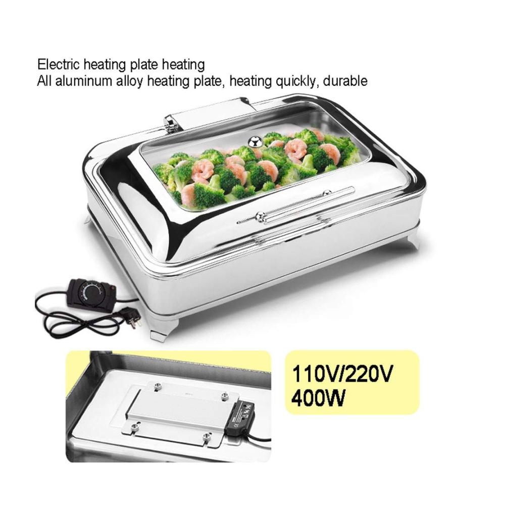 Elektrische Heizplatte – Die Chafing Dish verfügt über eine elektrische Heizplattenheizung, eine Temperatureinstellung, eine Leistung von 400 W, eine dicke Aluminiumlegierungsplatte und ein ausgezeichnetes Schaltungsdesign, eine schnelle Wärmeleitung und kann sicher mit allen hitzebeständigen Kochutensilien verwendet werden.