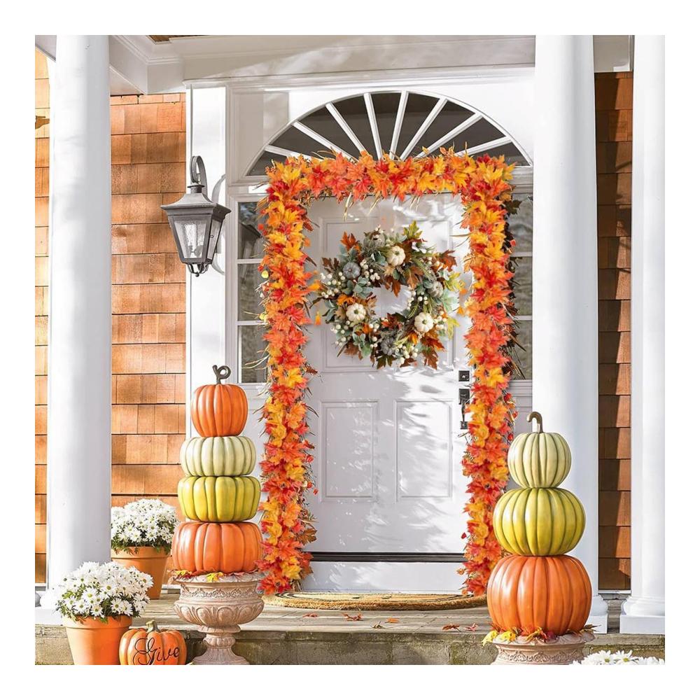 ♆Einfach zu lagern – Dieser kräftige Kürbiskranz ist einfach zu lagern. Sie können es an einem Ort aufbewahren, der vor direkter Sonneneinstrahlung und Regen geschützt ist, und es einfach mit einem feuchten Lappen reinigen.