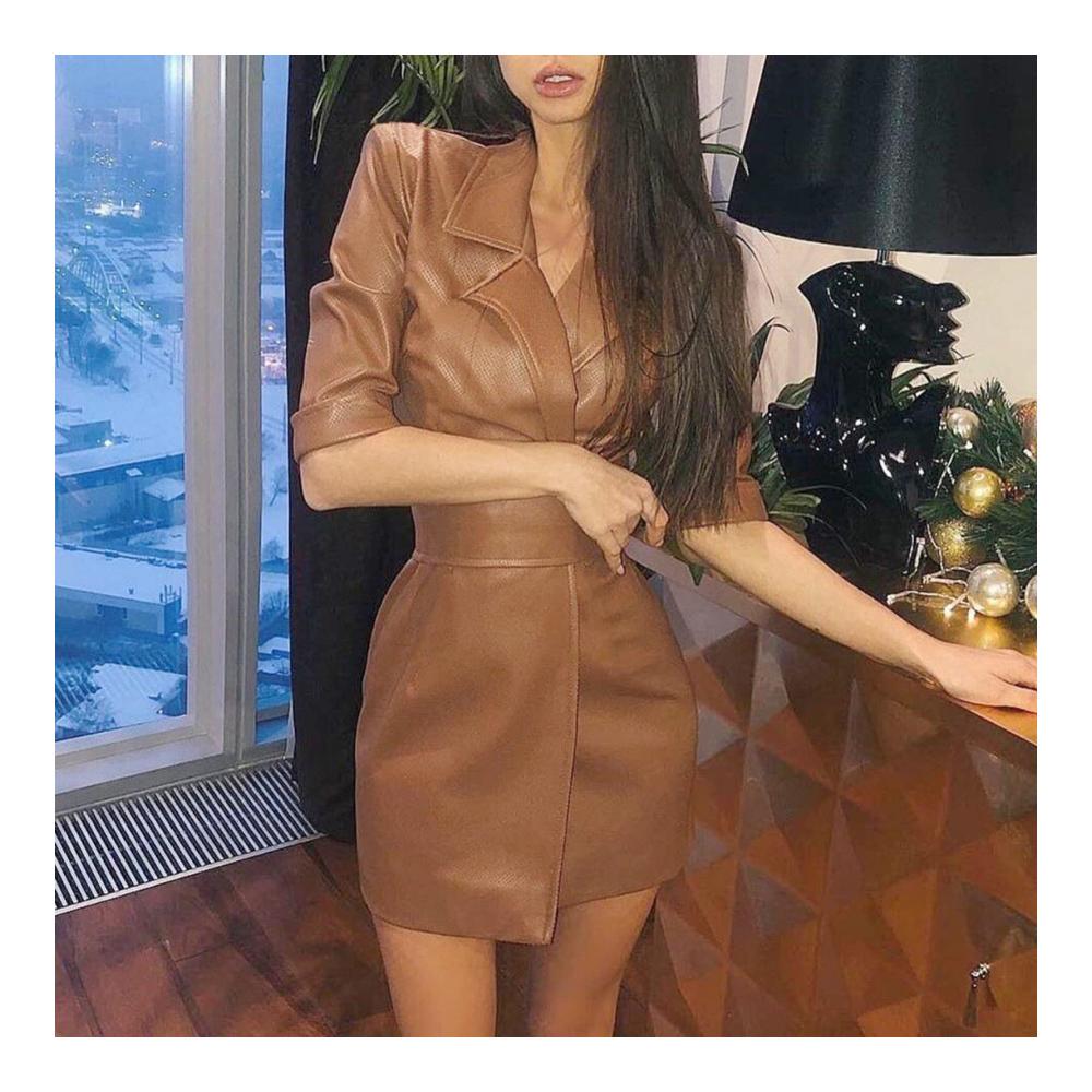 Kleid Mit Punkten Damen Schwarz Frauen Cooler Ledermantel Langarm V-Kragen Winterjacke Pu Sexy Bodycon Lederkleid Minikleid mit Gürtel Strick Pulloverkleid Damen