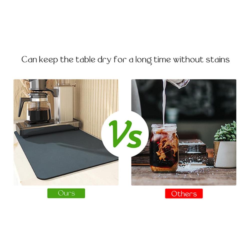 Beschreibung 1. synthetisches Kieselgur-Material. Diese Küchenabflussmatte ist haltbar, weich und faltbar. 2. Auslaufsicher: Nimmt verschüttete Flüssigkeiten und Kaffee auf und hält die Arbeitsfläche im Handumdrehen sauber und aufgeräumt. 3.Tropfsicher: Hilft beim Abtropfen von gespültem Geschirr, verhindert Schimmel und Bakterien und ist sauber und hygienisch. 4. Anti-Rutsch: Anti-Rutsch-Textur auf der Rückseite, starke Absorption, fest auf dem Schreibtisch befestigt, nicht leicht zu bewegen. 5. Anwendung: Kann nicht nur als Kaffeeunterlage, sondern auch als Unterlage zum Trocknen von Geschirr und Tassen in Küche, Bar und Bad verwendet werden. 6. versteckt Flecken: super saugfähig, um die Arbeitsfläche zu schützen, rutschfeste und rutschfeste Matte, um Maschinengeräusche zu reduzieren, schneidbar, waschbar und wiederverwendbar. 7. faltbares Design: kann zur einfachen Aufbewahrung zusammengefaltet oder aufgerollt werden