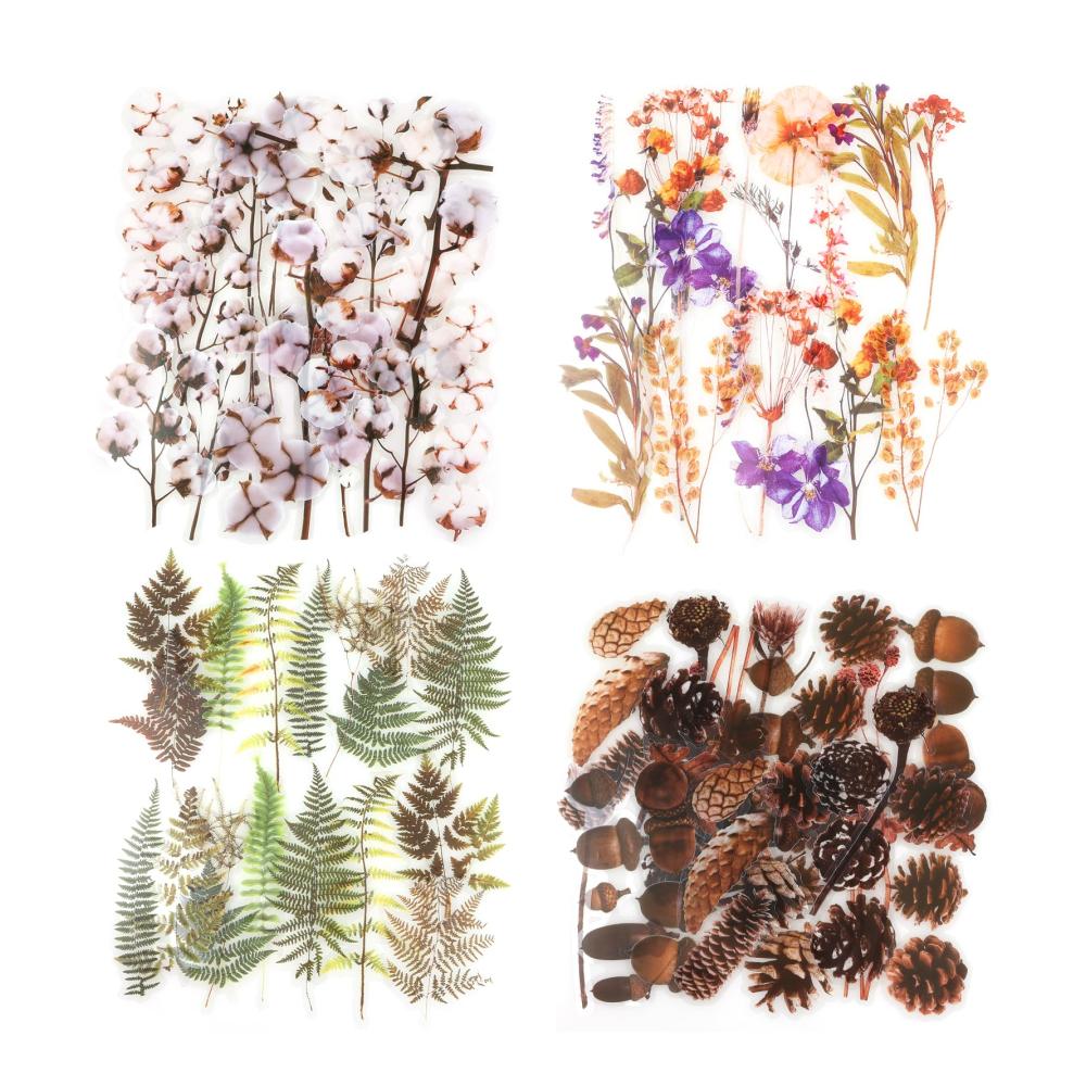 - Die Designs der großen Blume, des Farns, der weißen Baumwolle und des Tannenzapfens sind entweder niedlich und realistisch, alle von ihnen werden eine seltene Aufkleberkombination zu Ihrem Scrapbooking-Zubehör hinzufügen. Es ist eine gute Wahl, um mit Ihren Freunden und Liebhabern oder als ein wunderbares Geschenk für Ihre Kinder zu teilen, um die natürliche Welt zu lernen.