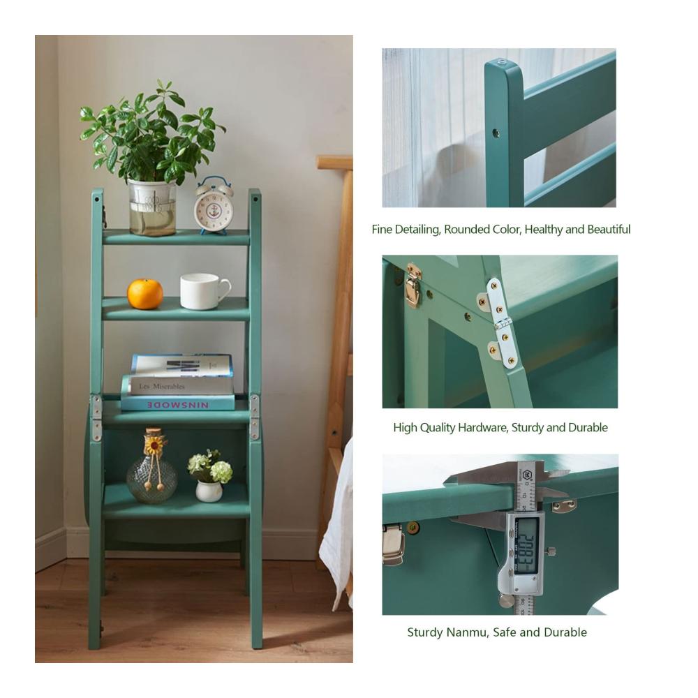 Der hölzerne Leiterstuhl kann dieses Problem bei schwierigen Höhen wie Küchen, Badezimmern und Lagerhallen leicht lösen. Er ist nicht nur eine Leiter. Das Holzdesign lässt sich leicht in Ihre Heimdekoration integrieren und kann auch als Regal für Ihre kleinen Bücher dienen Pflanze oder andere Dinge. Der klappbare Leiterstuhl erleichtert die Erledigung jeder Arbeit!