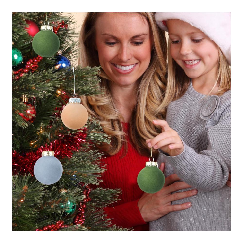 Erneuern Sie Ihren Urlaubsort: Mit diesen Weihnachtskugeln aus Samt können Sie Ihr Zuhause in eine einzigartige und elegante Winterszene verwandeln. Das Beflockungsdesign erzeugt einen Retro- und schönen Effekt, der Ihrem Weihnachtsbaum eine mehrdimensionale Ausstrahlung verleiht.