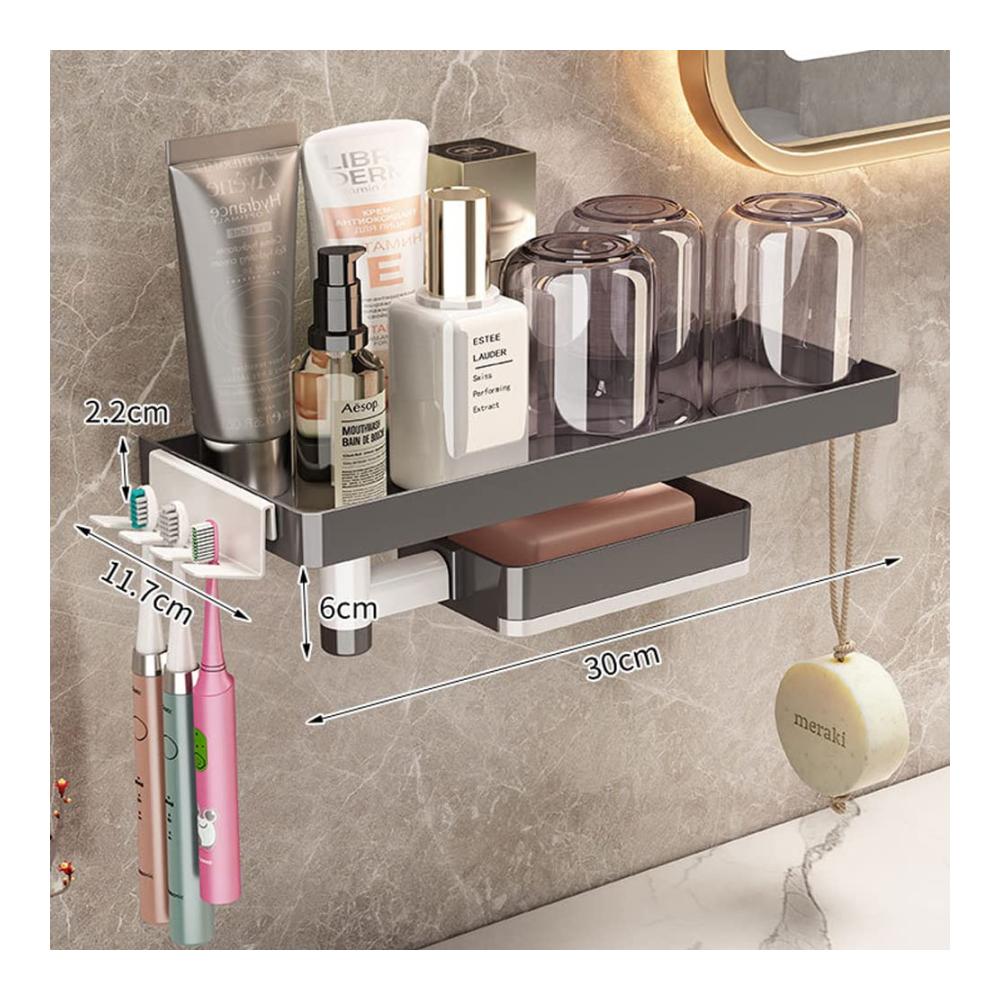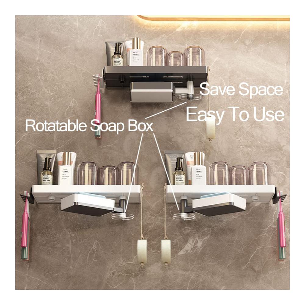 Unser innovatives Design umfasst nicht nur einen großzügigen Duschkorb, sondern auch Haken, eine Seifenschale und einen Zahnbürstenhalter, um all Ihre Bedürfnisse zu erfüllen. Das Aufbewahrungsregal lässt sich mühelos und ohne Bohren installieren, wodurch Ihr Badezimmer ordentlich und frei von lästigen Bohrlöchern bleibt.
