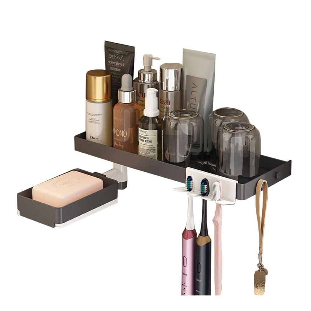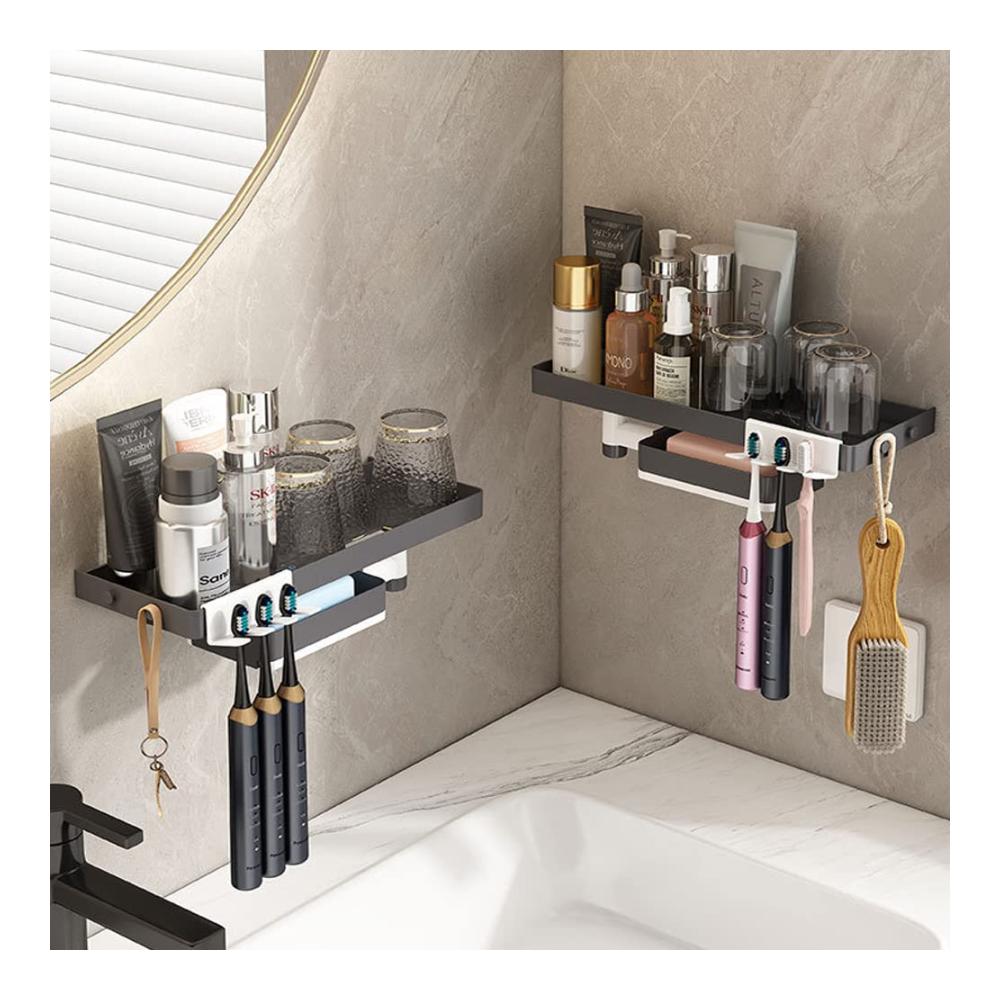 Duschablage Ohne Bohren Badezimmerregal mit Haken, Seifenschale und Zahnbürstenhalter – Aufbewahrungsregal für Bäder, Hotels, Fitnessstudios