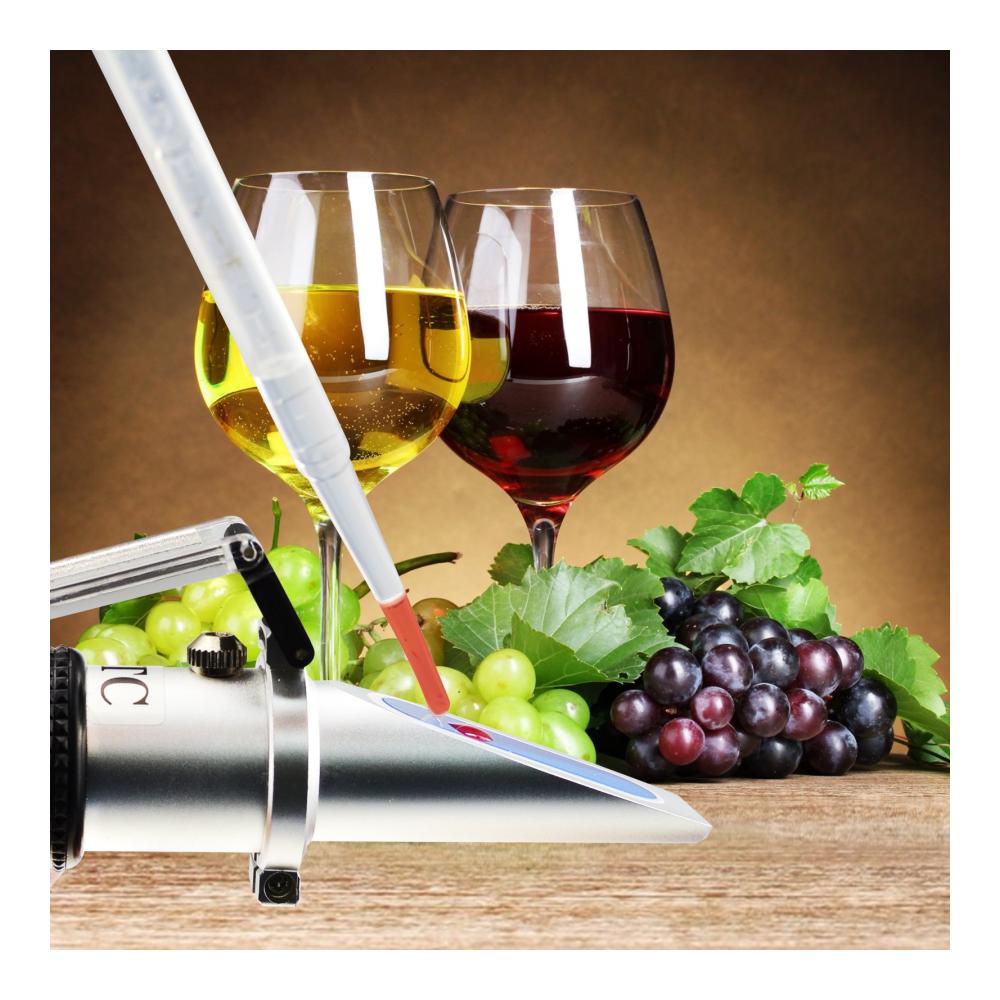 Mit unserem Refraktometer haben Sie ein präzises Werkzeug zur Hand, um die Qualität Ihres Weins zu überwachen und optimale Ergebnisse zu erzielen. Perfekt für Winzer, die Wert auf Genauigkeit und Zuverlässigkeit legen.