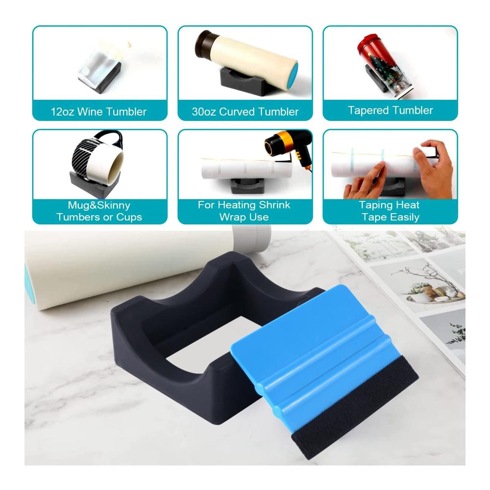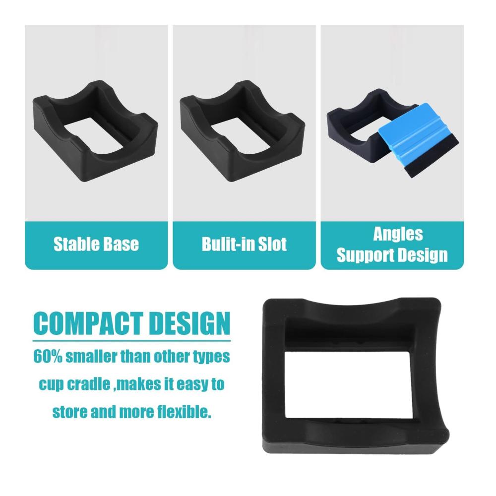 Unsere Silikon-Becherhalterung verfügt über Schlitze, Sie den Aufkleber-Rakel darin platzieren können. Die Tassenhalterung hält einem maximalen Gewicht von 45,4 kg stand, bleibt aber dennoch stabil und verformt sich nicht. Dank der guten Rutschfestigkeit können Aufkleber problemloser auf Trinkgläsern angebracht werden.